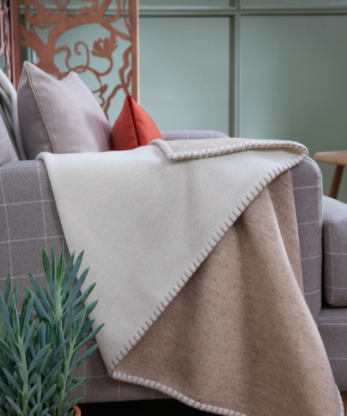Johnstons Merino and Cashmere Reversible Blanket Stitched Sofa Throw