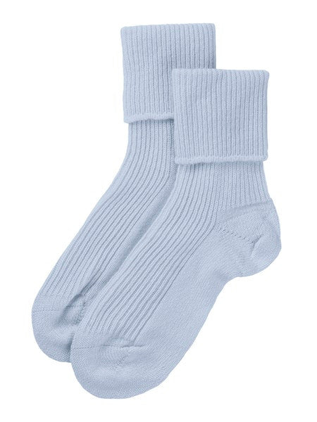 Johnstons of Elgin Women's Cashmere Ribbed Bed Socks in Pale Blue