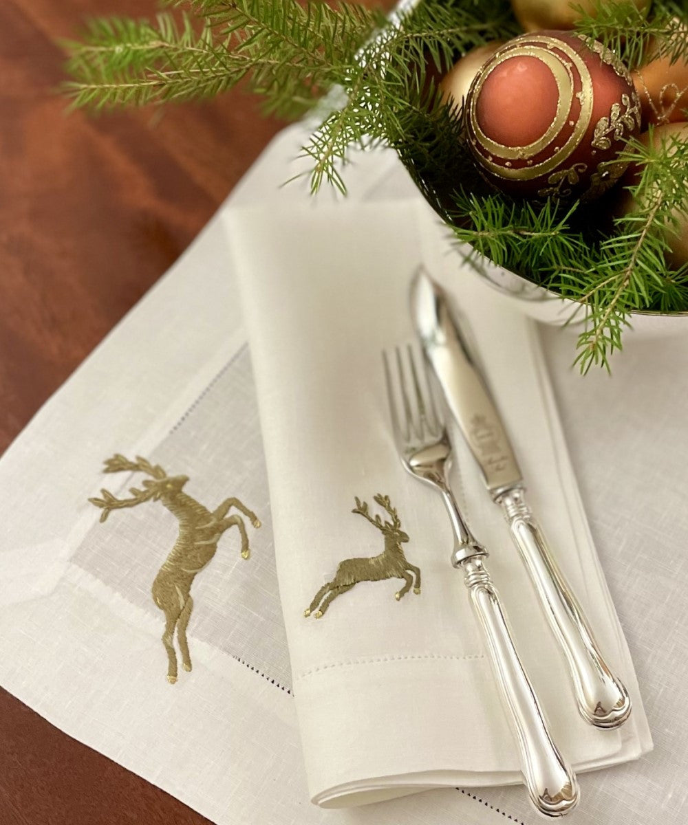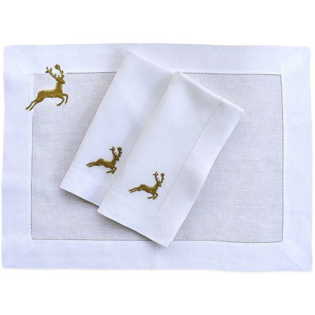 Jumping Deer Hand-Embroidered Table Linens Collection