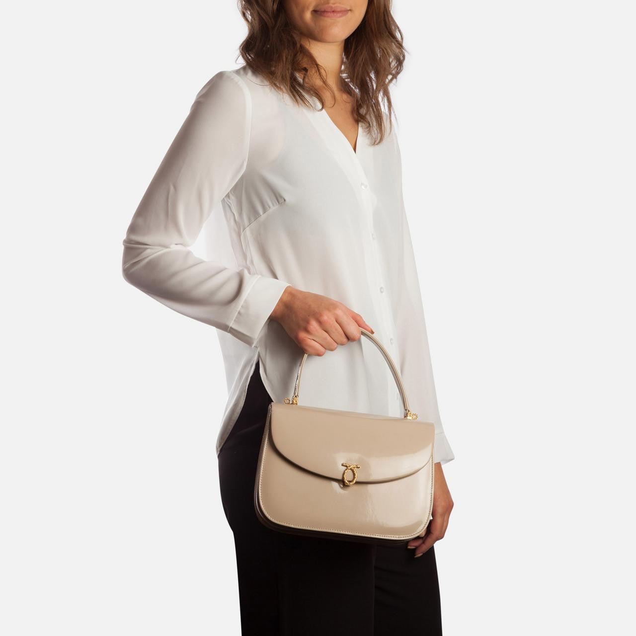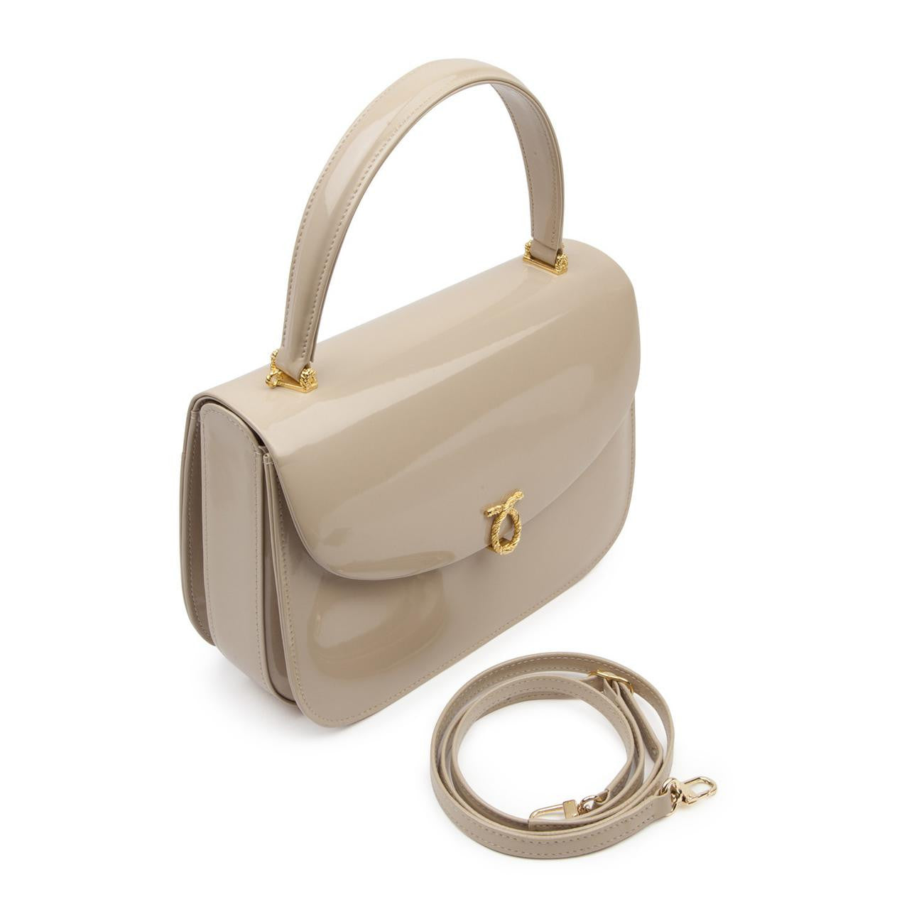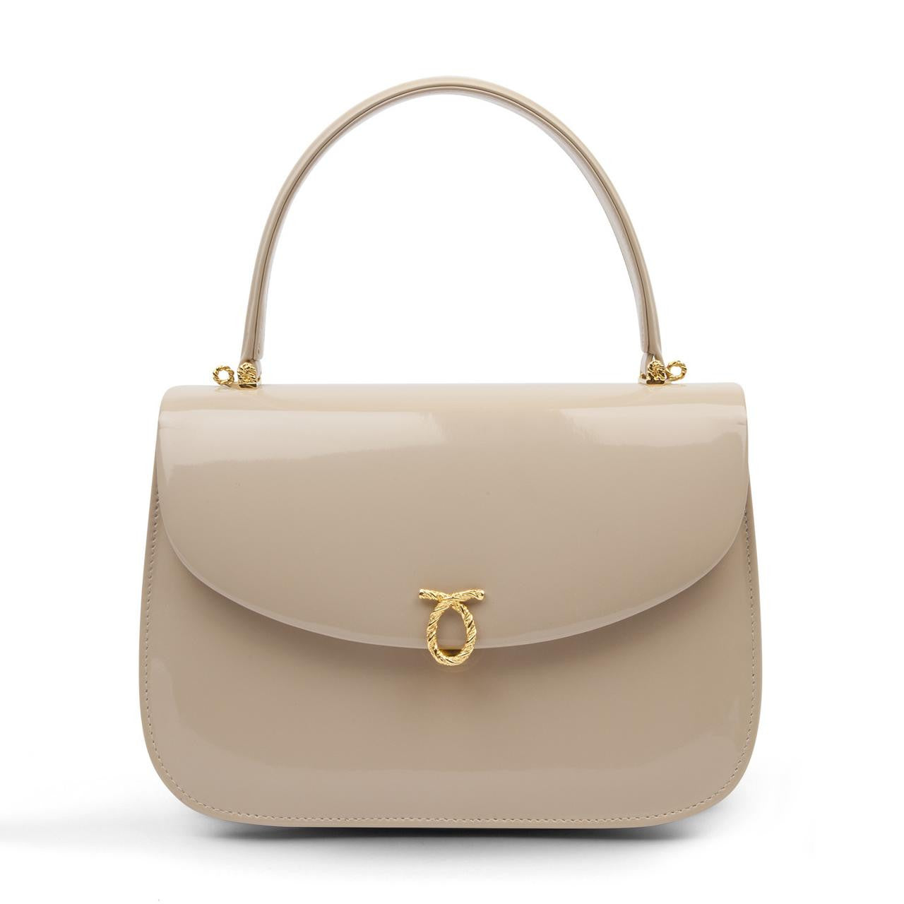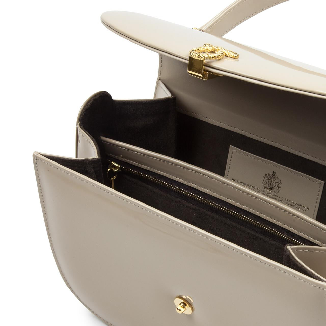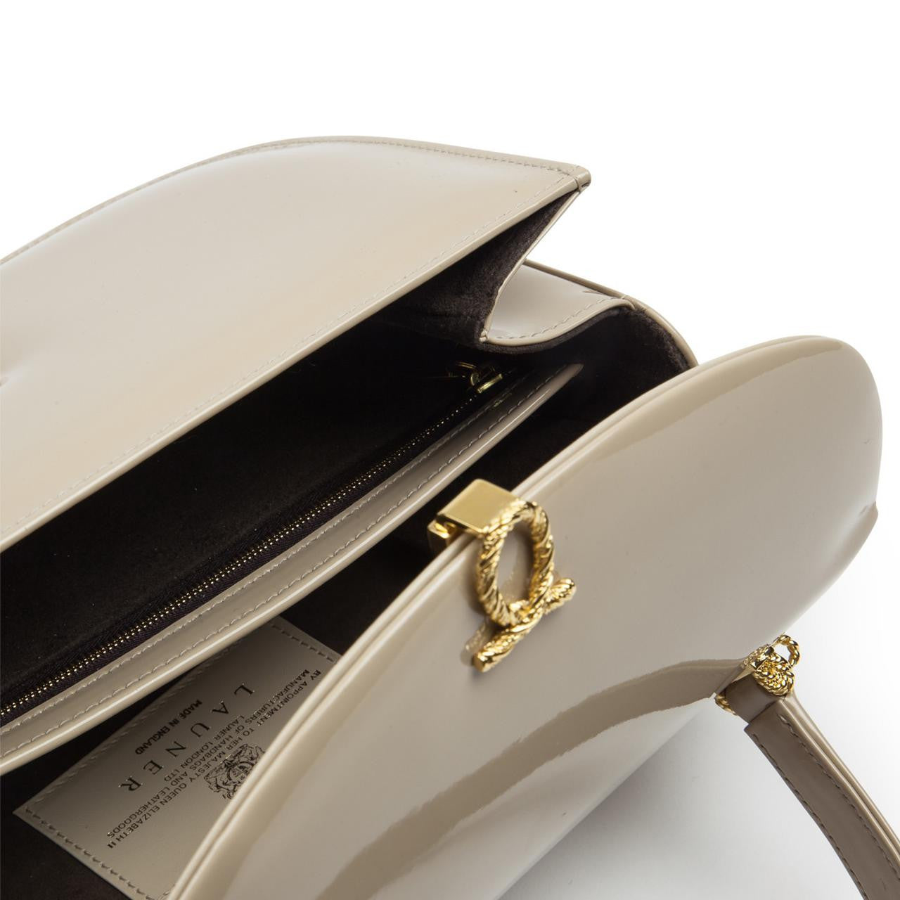 Launer London Adagio Handbag in Patent Bone with Brown Interior