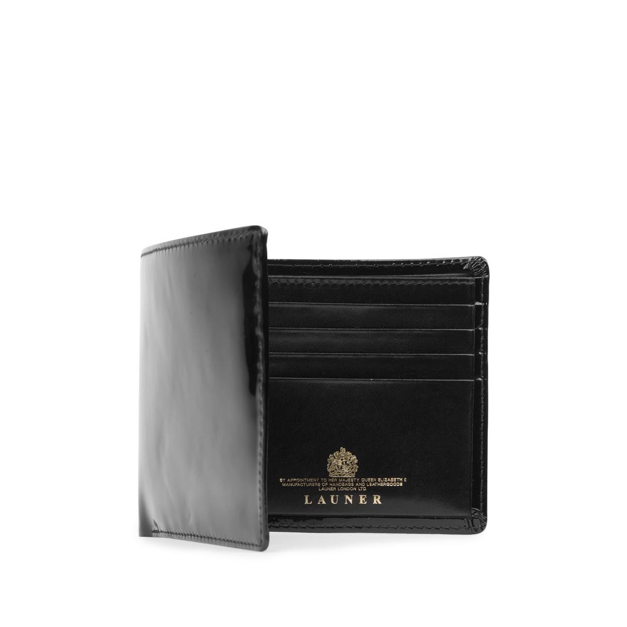 Launer London Eight Credit Card Wallet in Black Patent with Black Interior