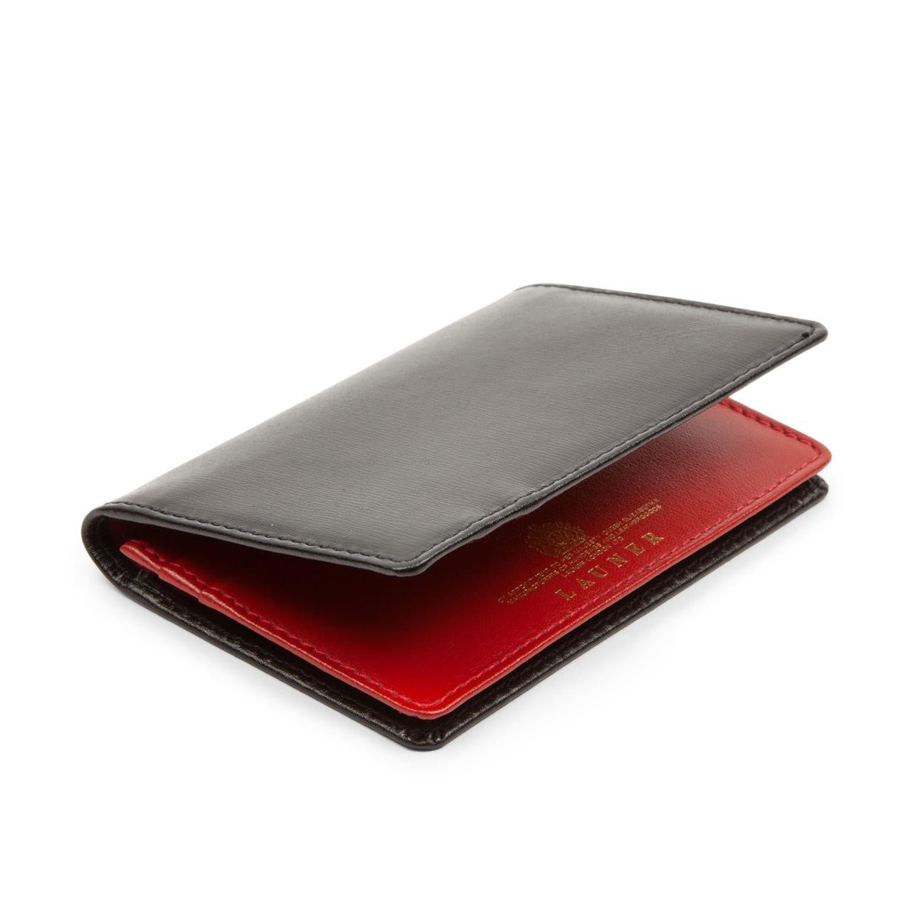 Launer London Four Credit Card Case in Black with Guard Red Interior