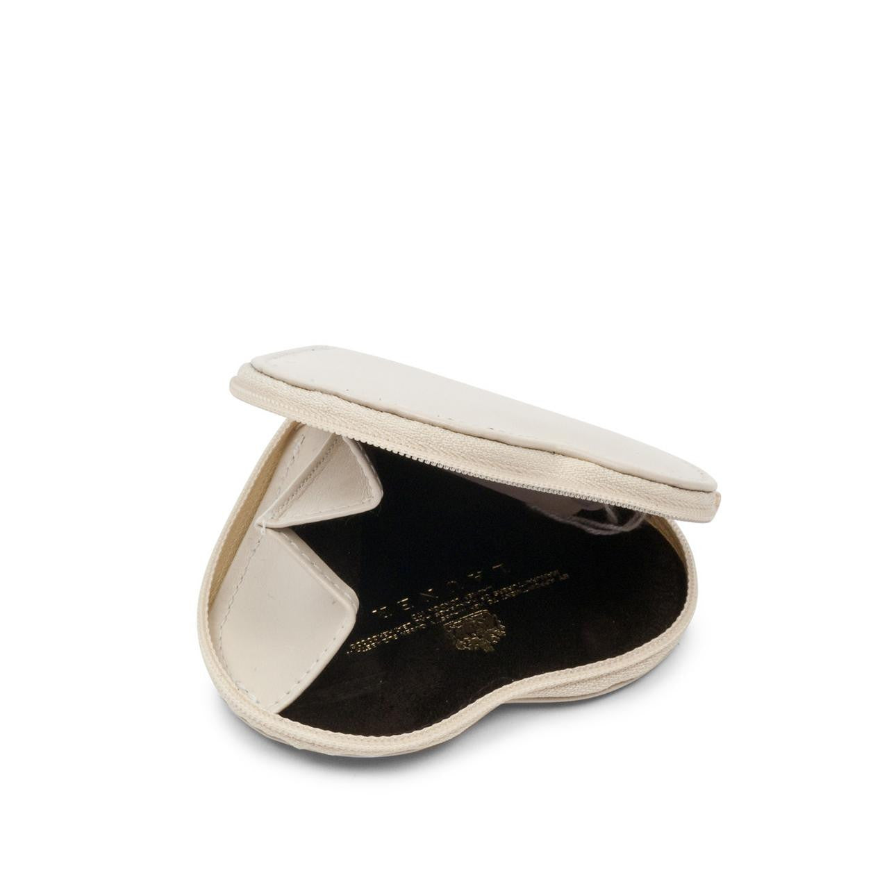 A delightful heart-shaped coin purse. Perfectly sized to fit in any Launer bag, keep coins, keys, important jewelry, or bits and bobs safe while on-the-go. Fine Italian calfskin exterior and beautiful suede lining, there simply is no other case like it. Personalize it with your initials.