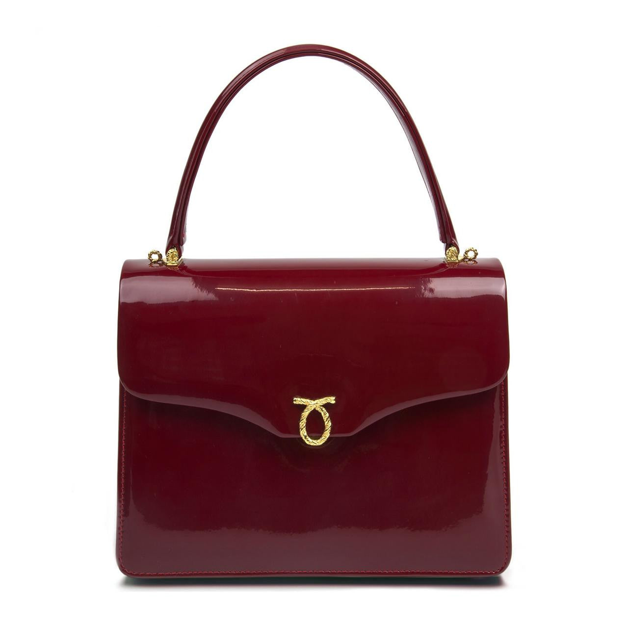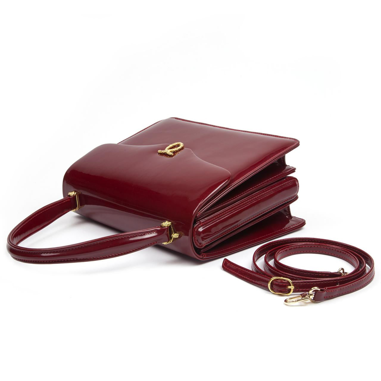 Launer London Royale Handbag in Patent Wild Cherry with Black Interior
