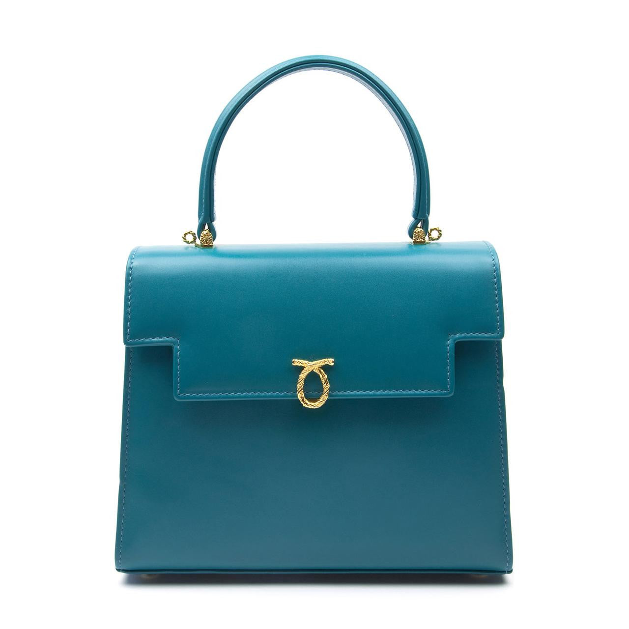 Launer London Traviata Handbag in Turquoise with Black Interior