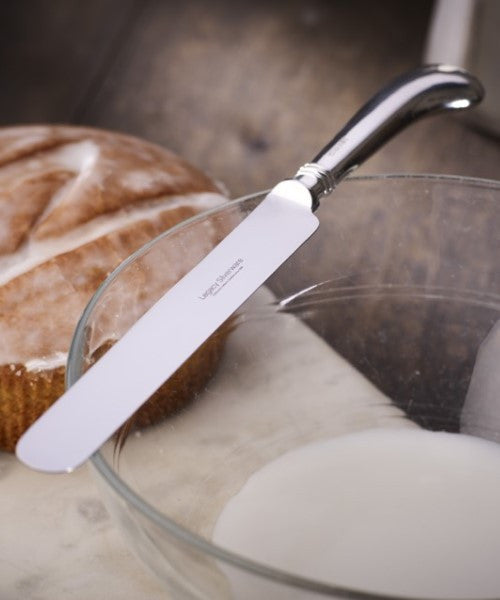 A beautiful, bold and elegant Pallet blade on a sterling silver Pistol pattern handle makes this unique gift absolutely perfect for any enthusiastic baker. Designed for icing, spreading, decorating and buttering, this knife is a great asset to anyone who loves a glamorous baking kitchen, and relishes an exquisite piece of classical silverware.