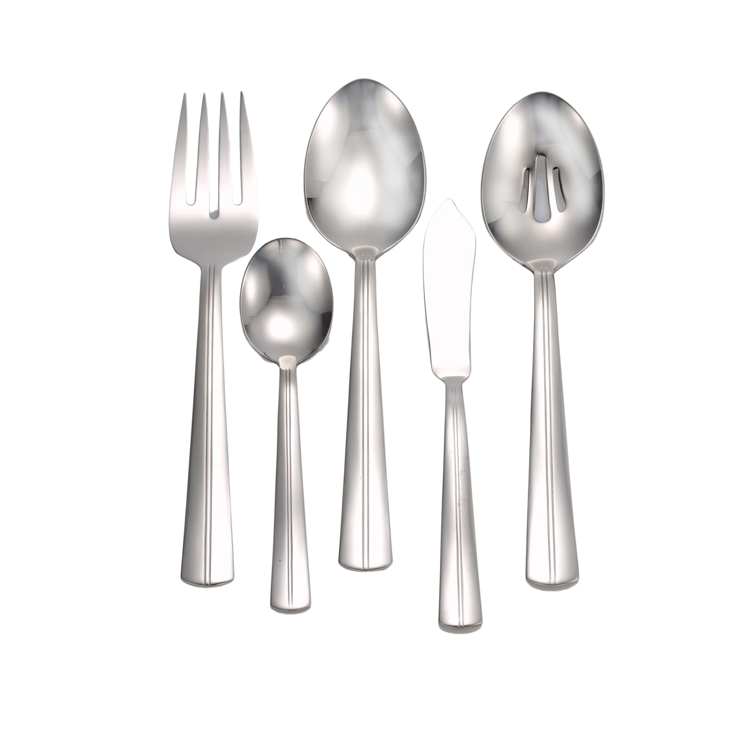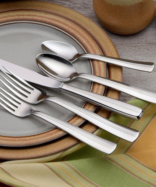 The clean parallel lines of the Cedarcrest stainless steel pattern by Liberty Tabletop accentuate the modern form of the handle. Elegant and understated, this 18/10 stainless steel flatware set is made in the USA. Crafted in slightly-oversized Euro proportions, this modern pattern is polished to a mirror-finish. Heavy-weight and perfectly balanced, this pattern is sure to impress—be it at a special dinner party or as an everyday pattern.
