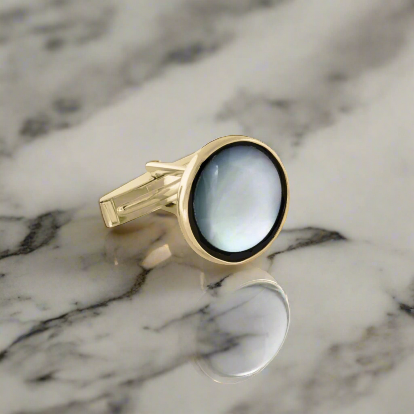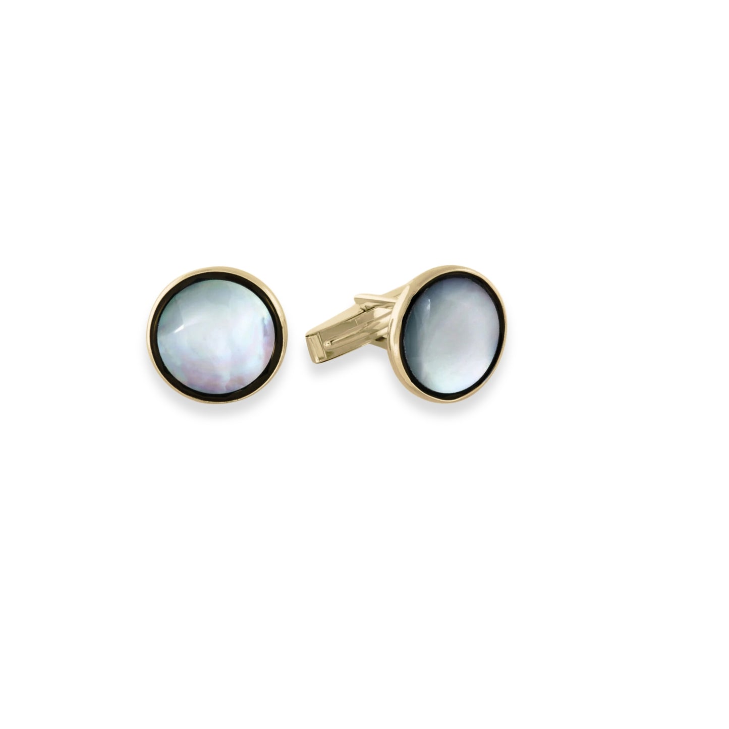 14K Gold Round Onyx & Mother of Pearl Cufflinks