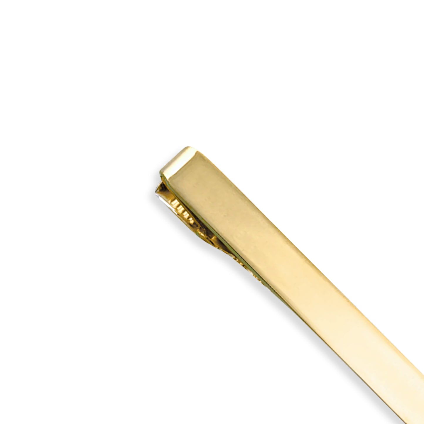 Plain men's 14K gold tie clip, made in the United States of yellow gold. Personalized engraving available.