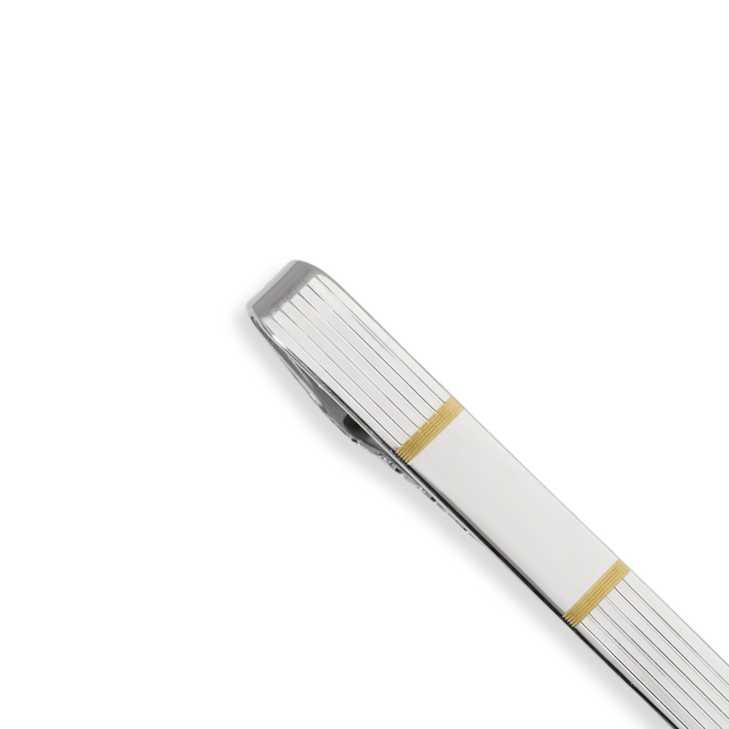 The Lanam Shop Sterling Silver and Gold Plate Tie Bar with Linear Engine Turned Design
