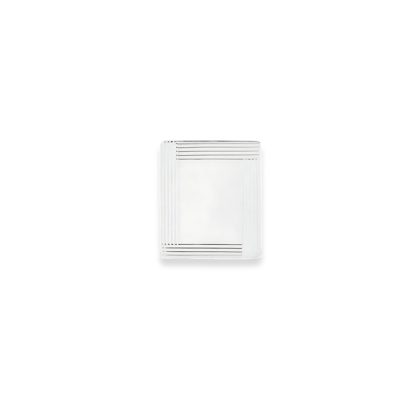 Sterling silver rectangular tie pin, crafted in the United States and featuring a classic four line engine turned bored.