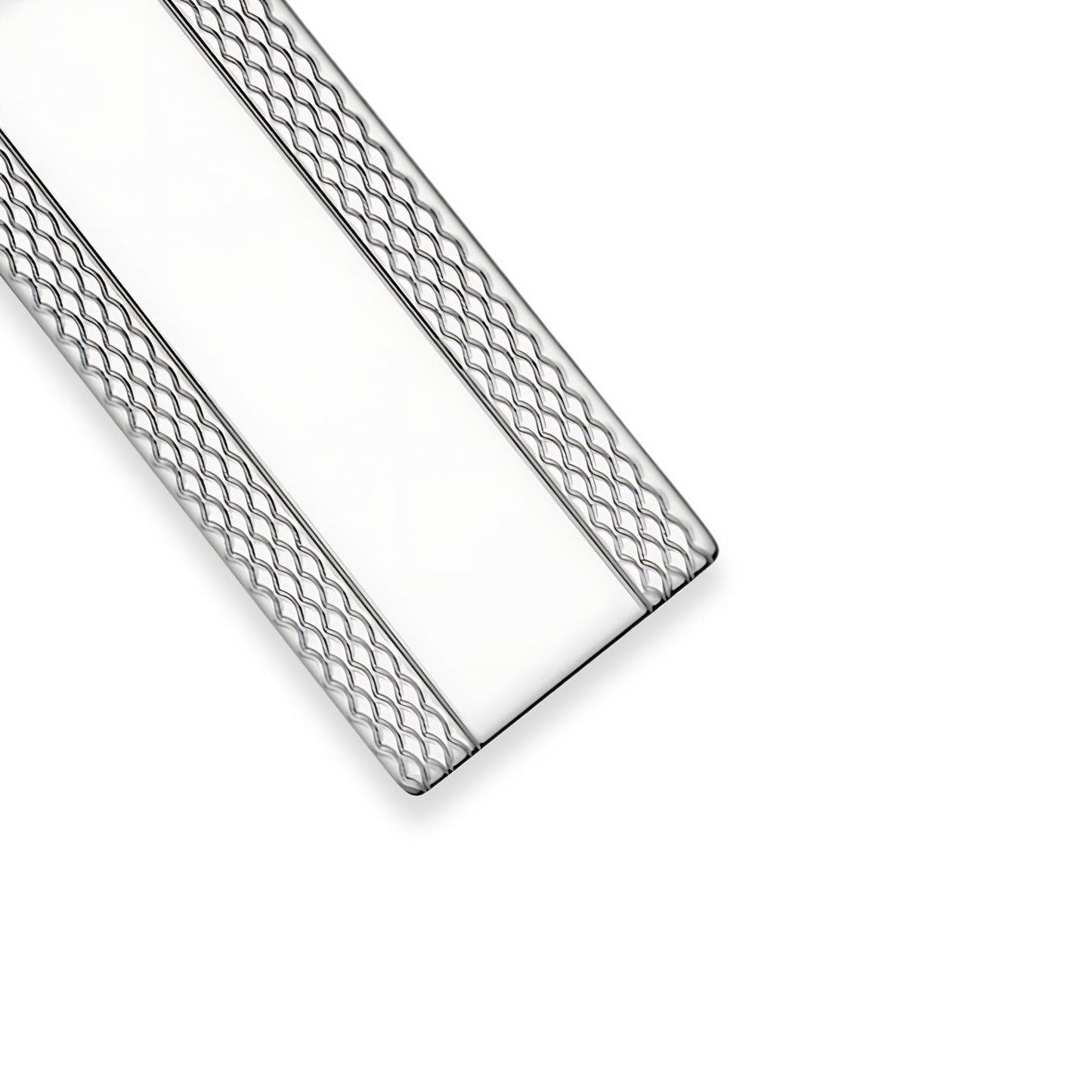 Featuring a series of wavy lines and a center field ideal for engraving, this scalloped edge sterling silver money clip is made in the United States.