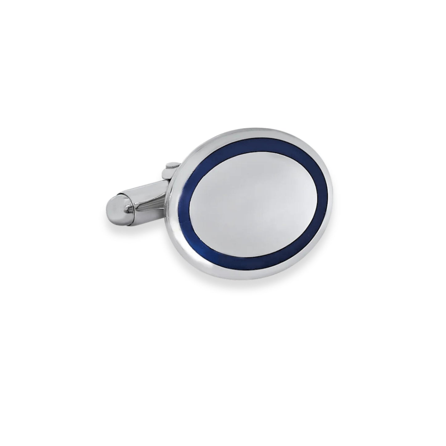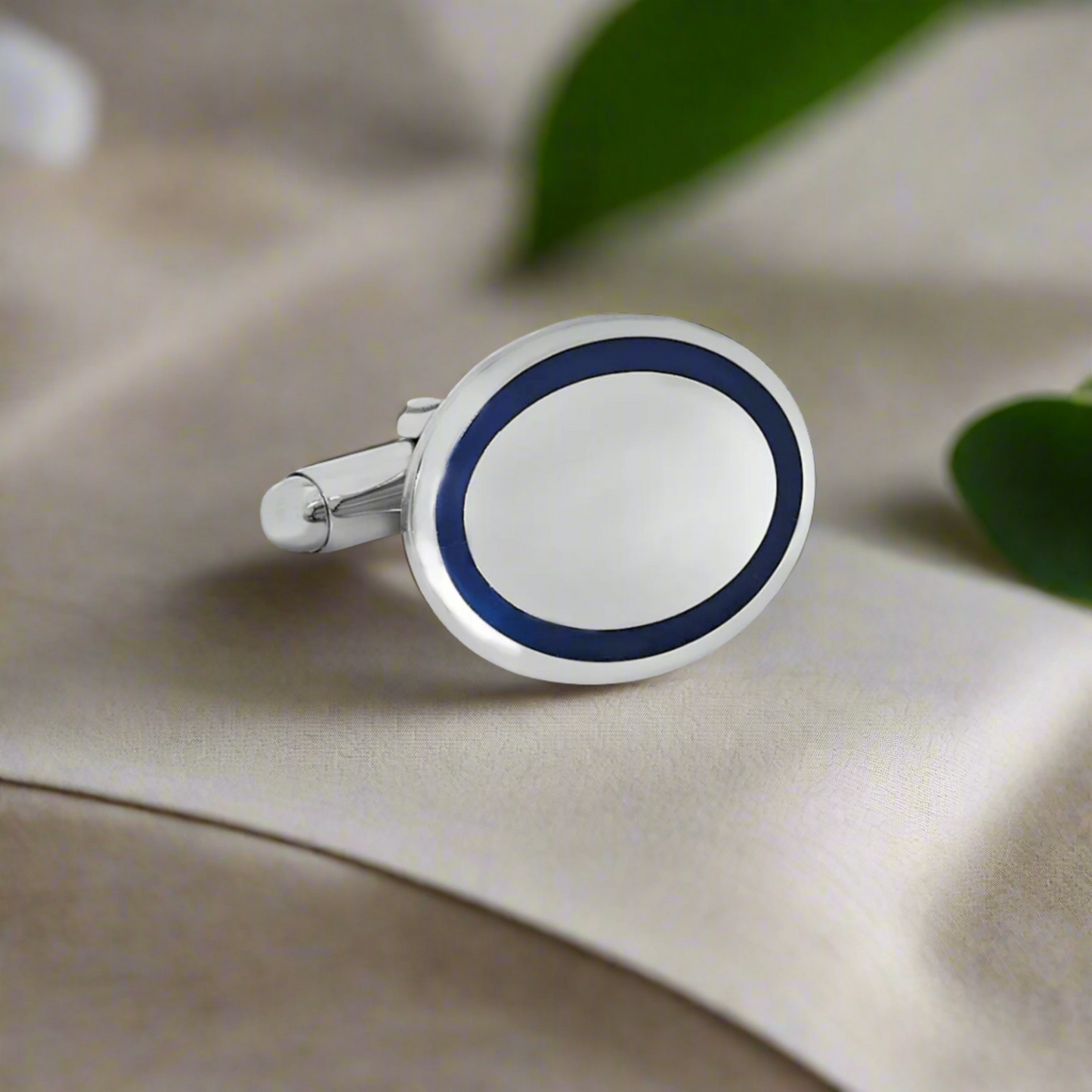 The Lanam Shop Sterling Silver Oval Cufflinks with Blue Trim