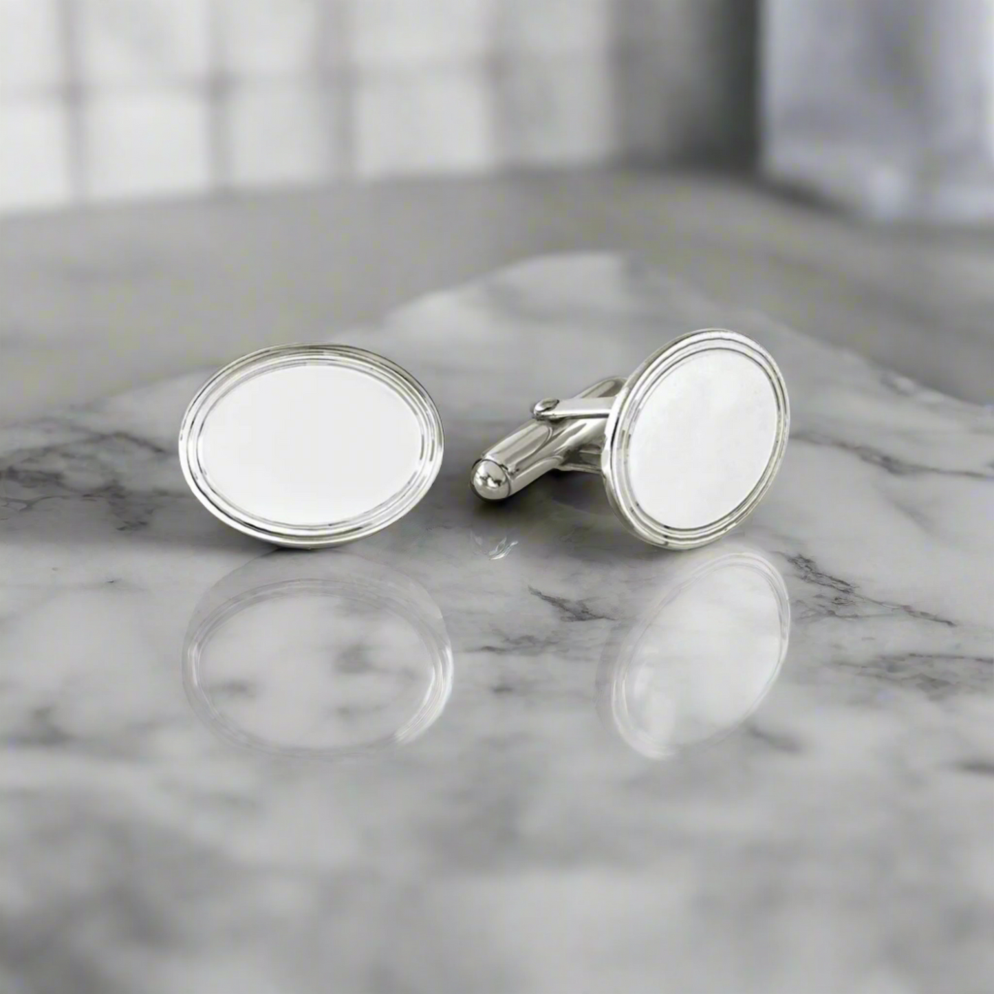 Sterling Silver Oval Cufflinks with Engine Turned Design