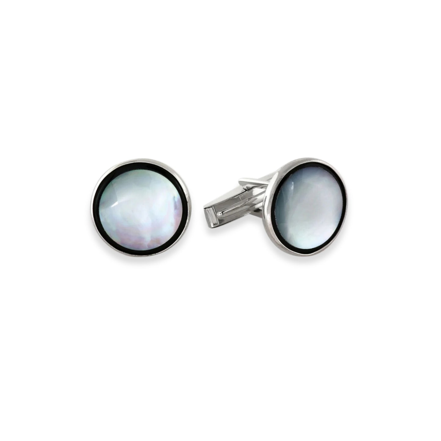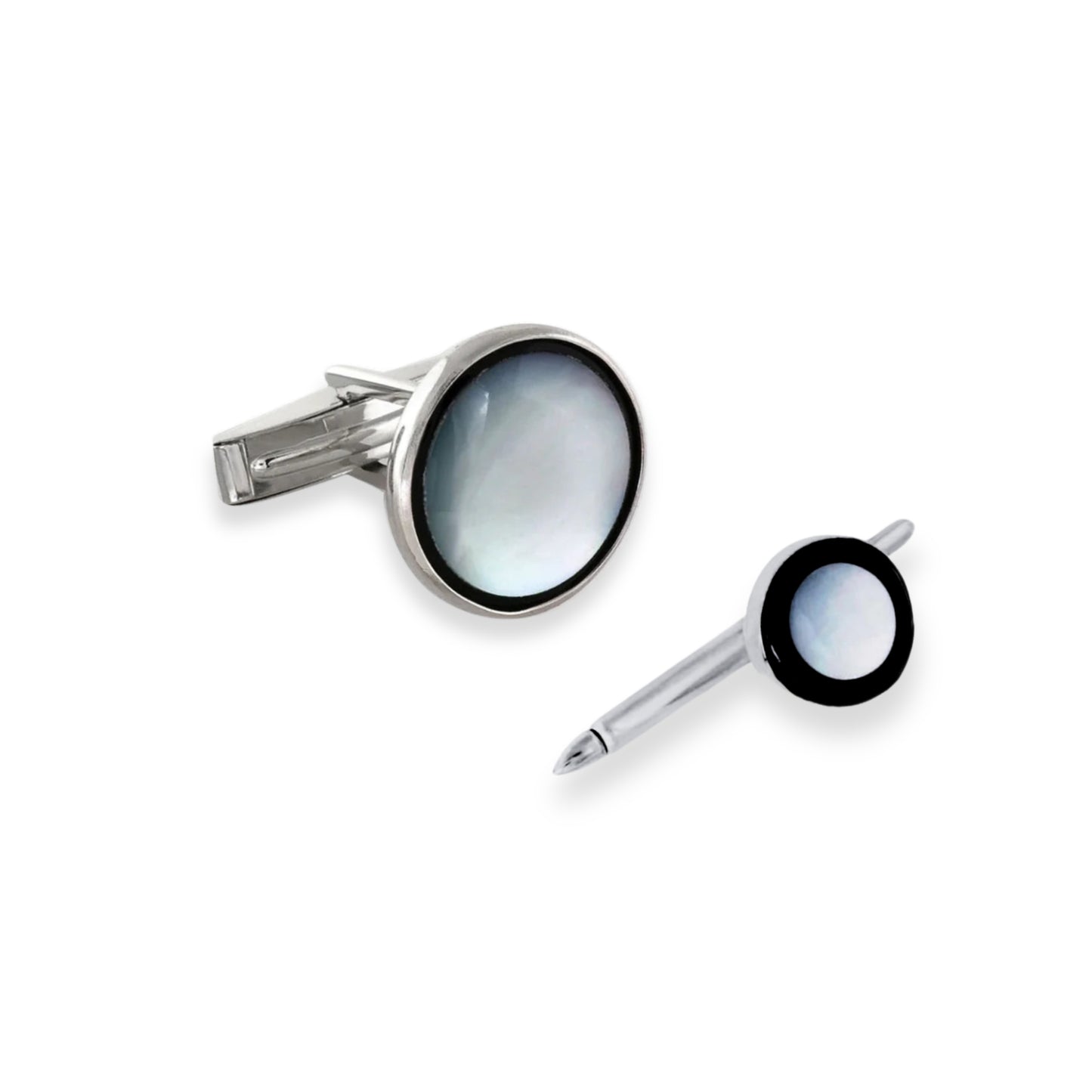 The Lanam Shop Sterling Silver Round Onyx & Mother of Pearl Tuxedo Stud Set