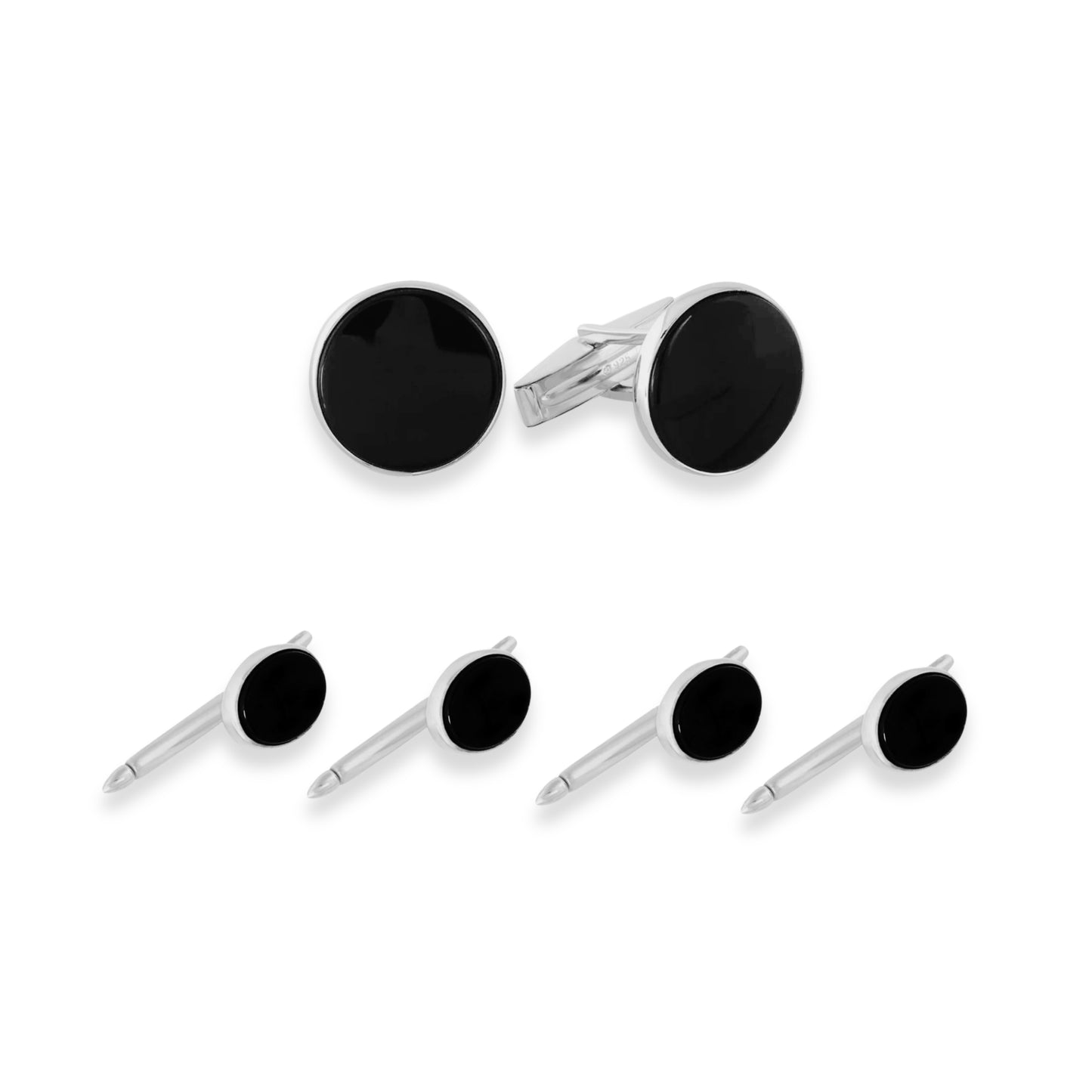 The Lanam Shop Sterling Silver Round Onyx Tuxedo Stud Set