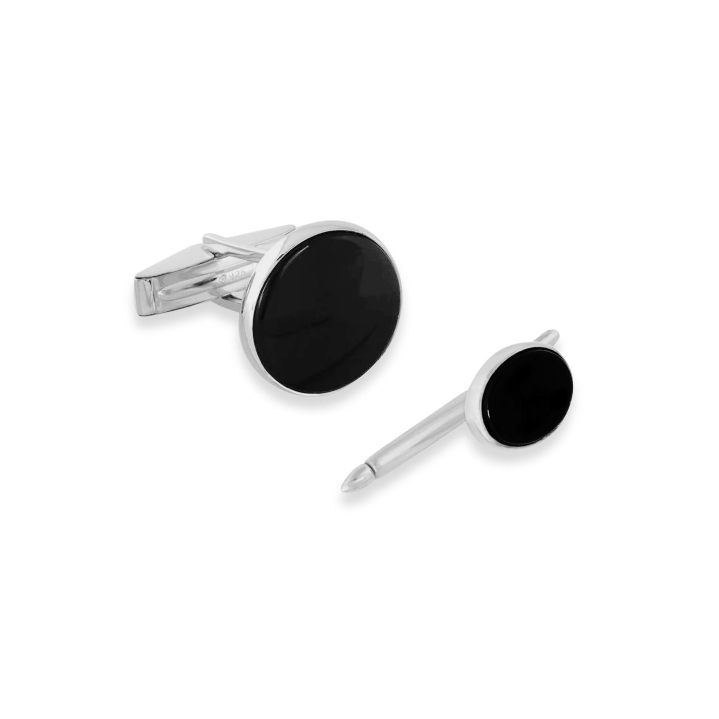 Sterling Silver Round Onyx Tuxedo Stud Set