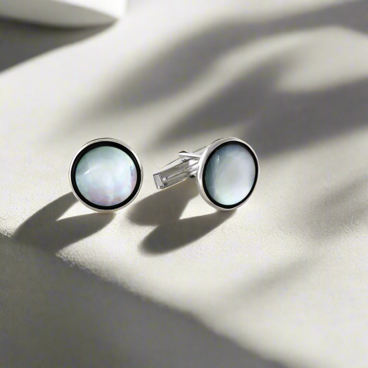 Sterling Silver Round Onyx & Mother of Pearl Cufflinks