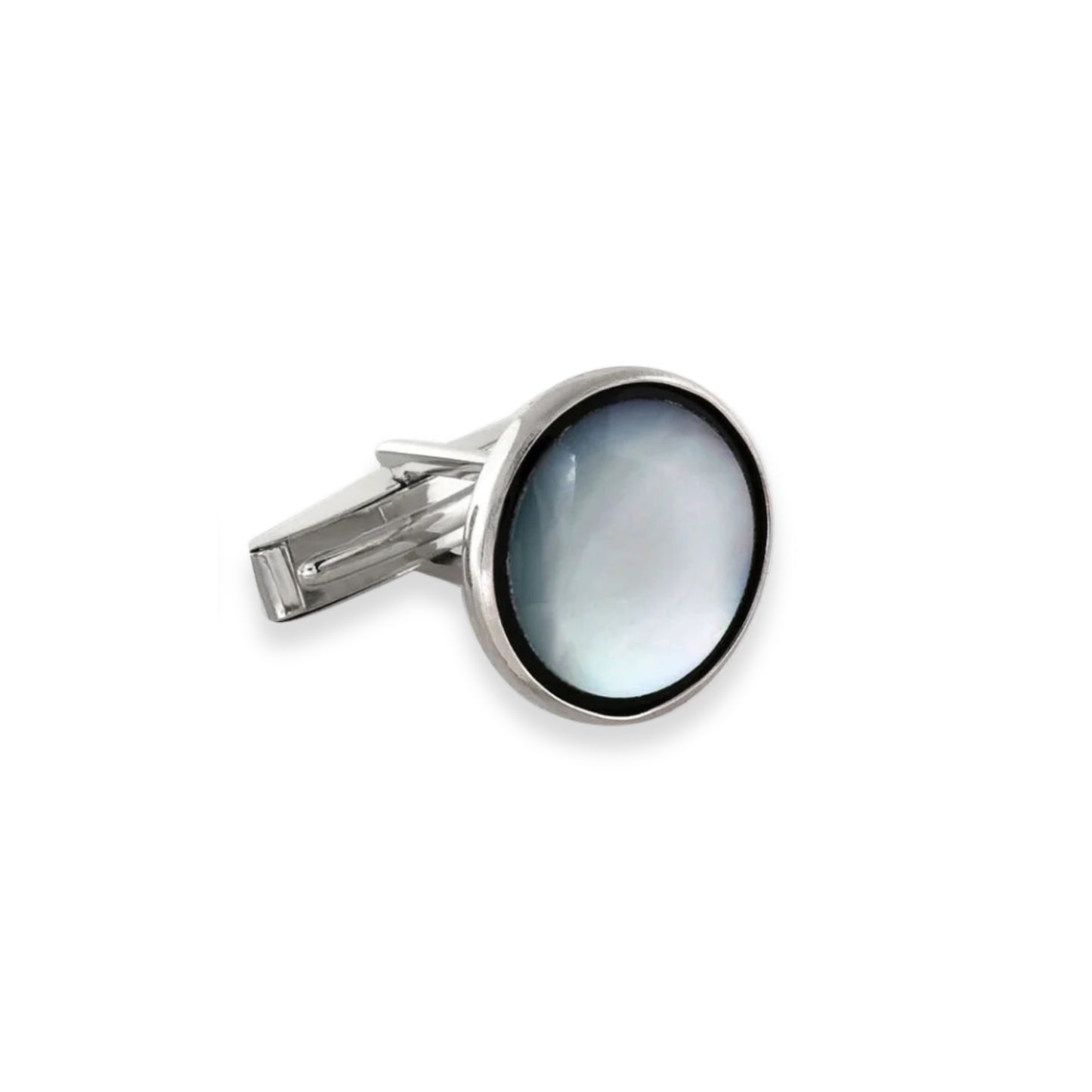 The Lanam Shop Sterling Silver Round Onyx & Mother of Pearl Cufflinks