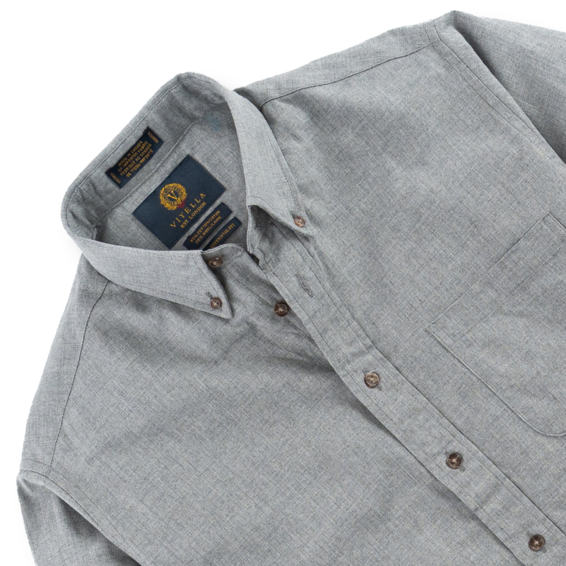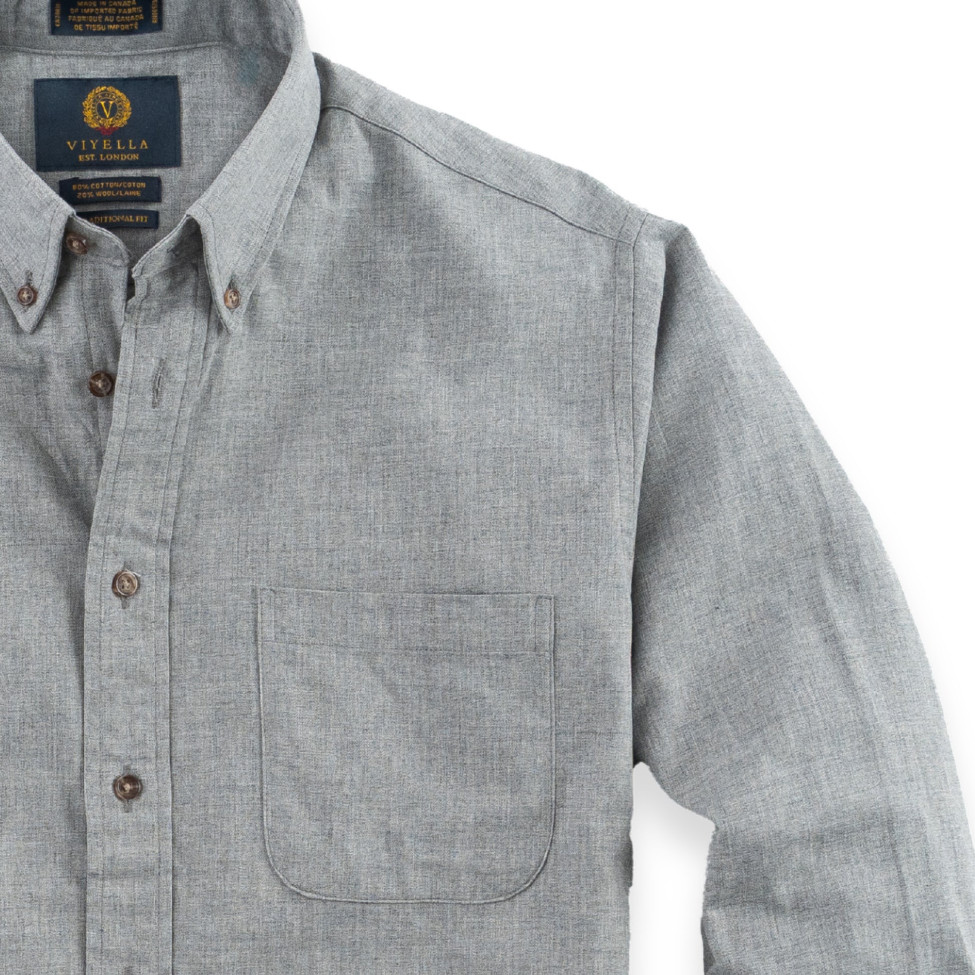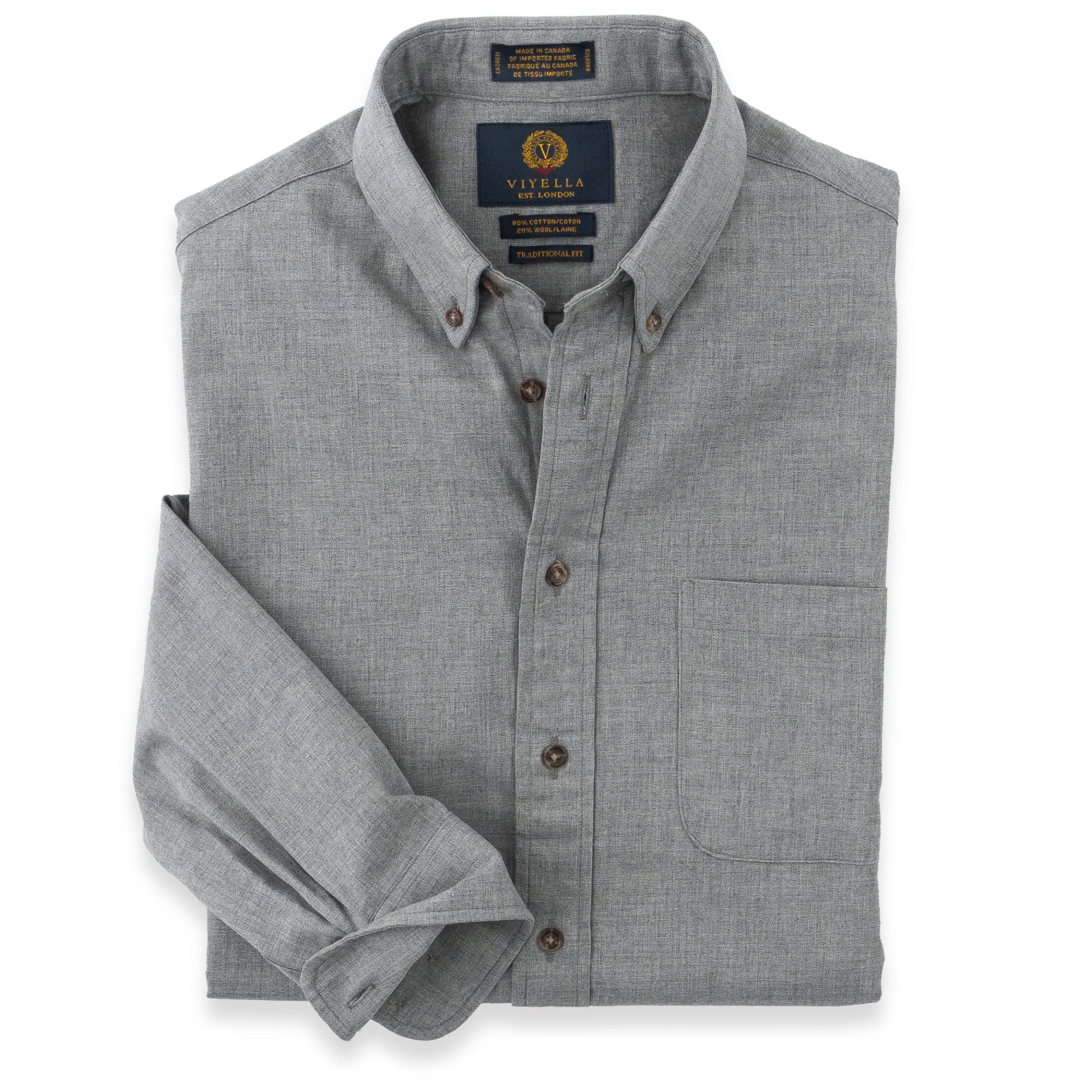 Made in Canada from Viyella’s 80% cotton & 20% wool blend, the Men’s Flannel Grey Shirt offers sophisticated simplicity with soft texture and neutral tones. Available in Traditional, Tall, Trim, and Big fits, with Traditional fit being the most generously cut — it combines effortless style and lasting comfort.