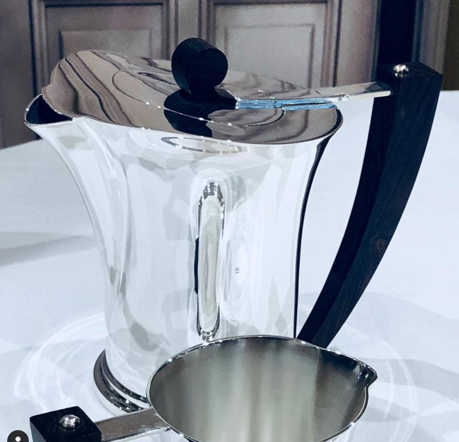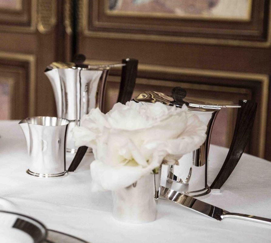 "The extensive design archives allowed Odiot to rediscover part of its history from the 1920s. This service, the original of which was exhibited at the International Exhibition of Decorative and Industrial Arts in 1925 in Paris, is part of the modernist momentum of the time. Its contoured lines evoke speed, a great inspiration for “Art Deco” design." - Maison Odiot, Paris