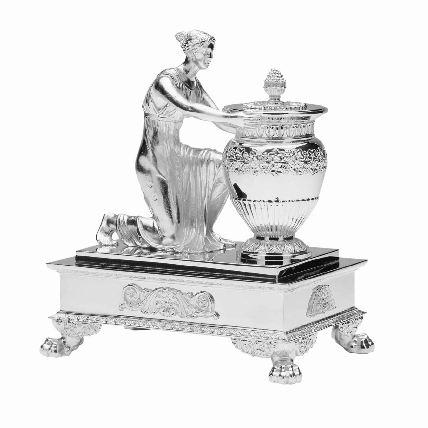 "All the sculptural research of Odiot is embodied in this mustard pot, originally part of a service designed and made for Count Branicki. The original piece is in the Rijksmuseum, Amsterdam.