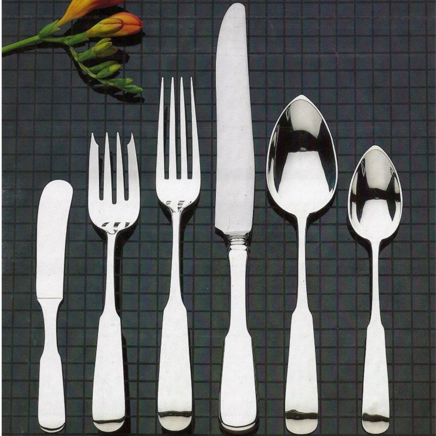 Handwrought sterling silver is a true luxury. You can instantly tell the difference between machine-pressed silver cutlery and cutlery that is made by hand, on an anvil. Expert silversmiths with generations of knowledge use time-honored methods to produce this remarkable collection of cutlery. A range of classic patterns are available. Hand-engraving of a monogram, family crest, or other symbol can be arranged. All patterns can be produced with gold plating (vermeil) upon request.