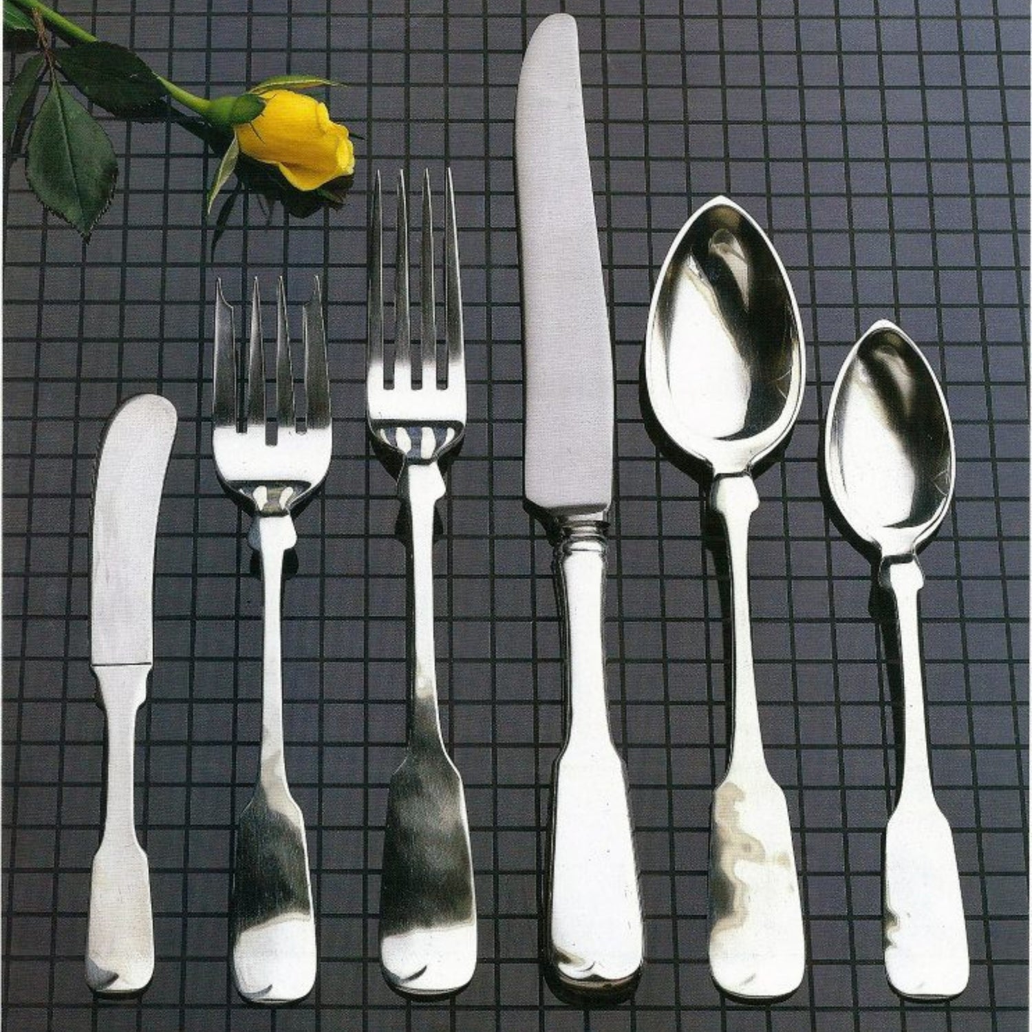 Handwrought sterling silver is a true luxury. You can instantly tell the difference between machine-pressed silver cutlery and cutlery that is made by hand, on an anvil. Expert silversmiths with generations of knowledge use time-honored methods to produce this remarkable collection of cutlery. A range of classic patterns are available. Hand-engraving of a monogram, family crest, or other symbol can be arranged. All patterns can be produced with gold plating (vermeil) upon request.