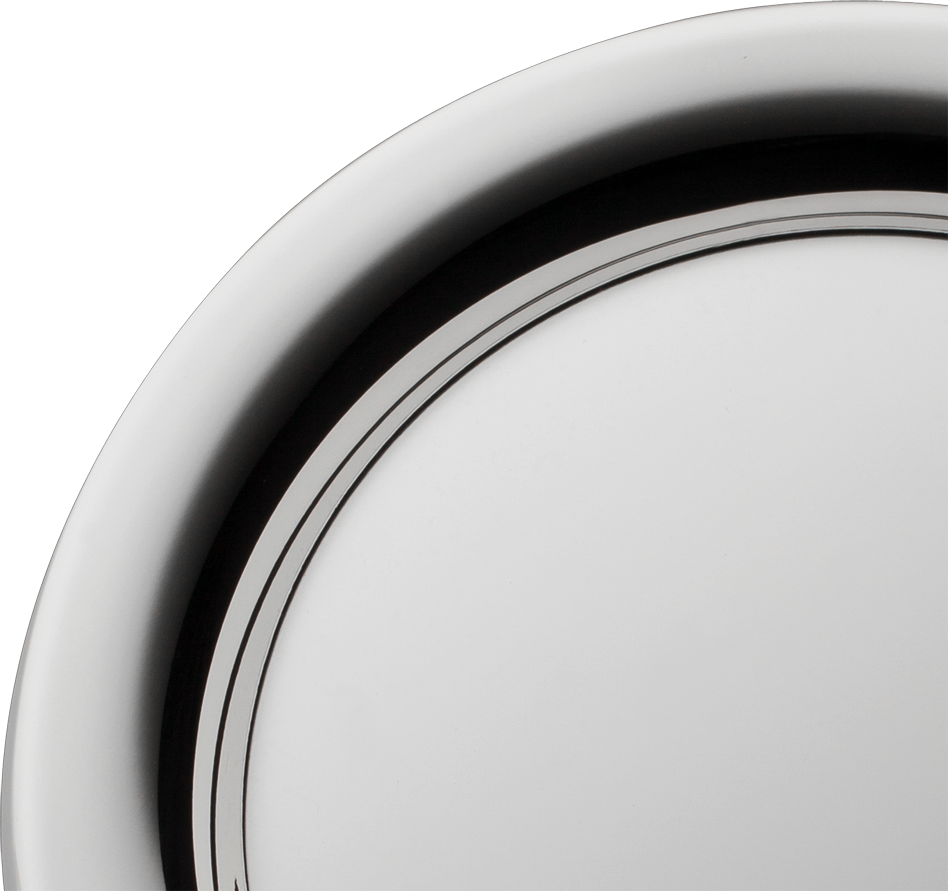 The sterling silver Robbe and Berking uses to create their holloware and trays is 925 parts per 1000 silver and 75 parts per 1000 other metals, such as copper. This traditional alloy strengths the soft silver metal enabling it to be used regularly. A flawless mirror finish is applied by the skilled silversmiths at Robbe and Berking. With time and use a natural, beautiful patina will develop. Best described as an “internal glow” this highly desirable optical effect is the result of microscopic surface scratches, which reflect light. The more you use it, the prettier it will be. Since Robbe and Berking includes a highly regarded precious metals investment division in-house, you be assured the silver you are buying is over the highest possible quality.