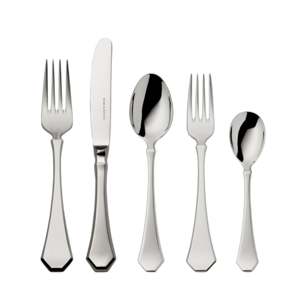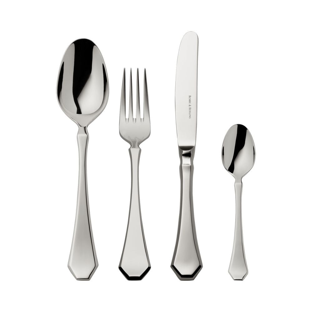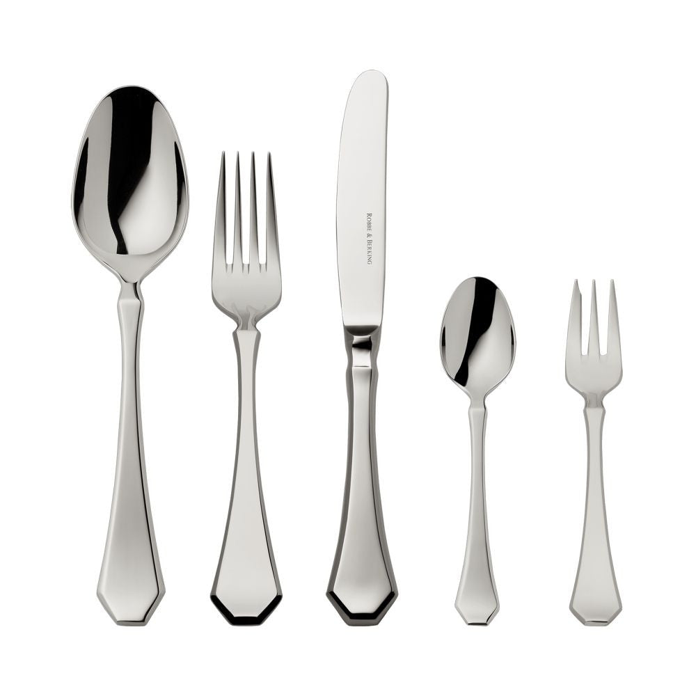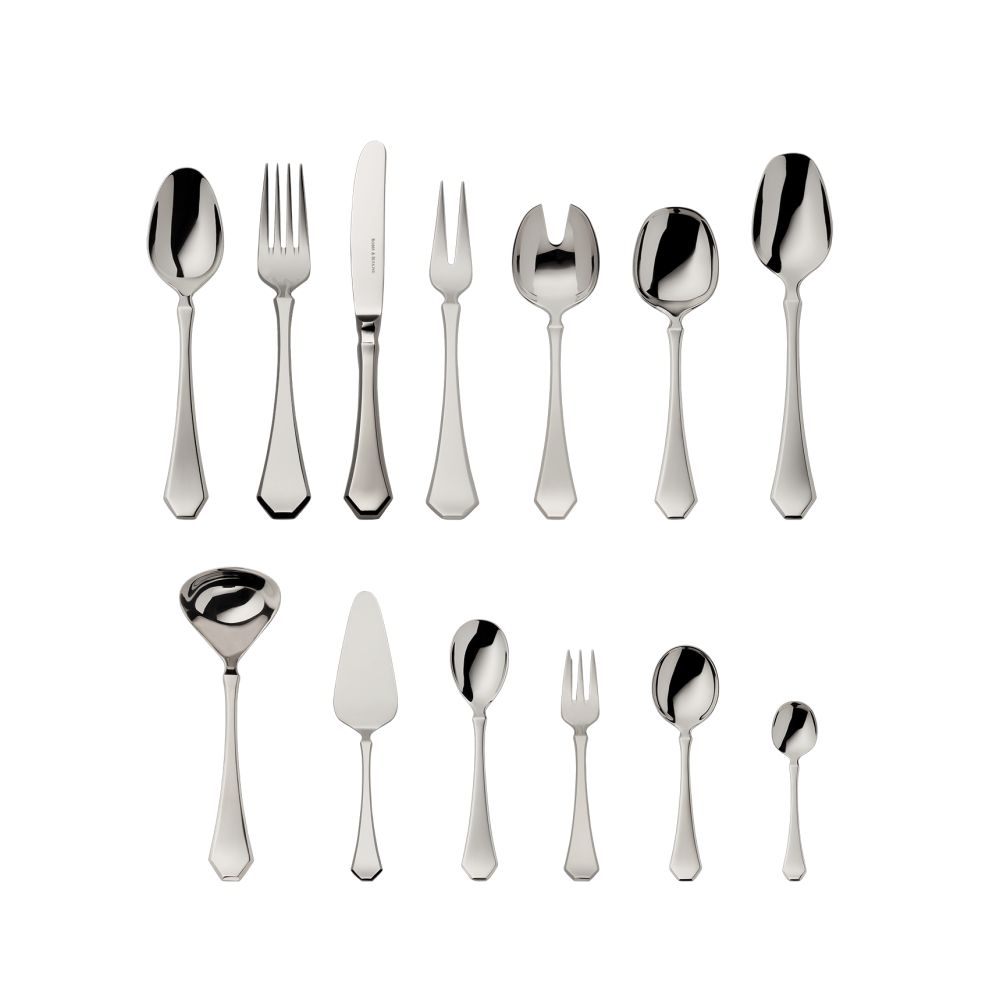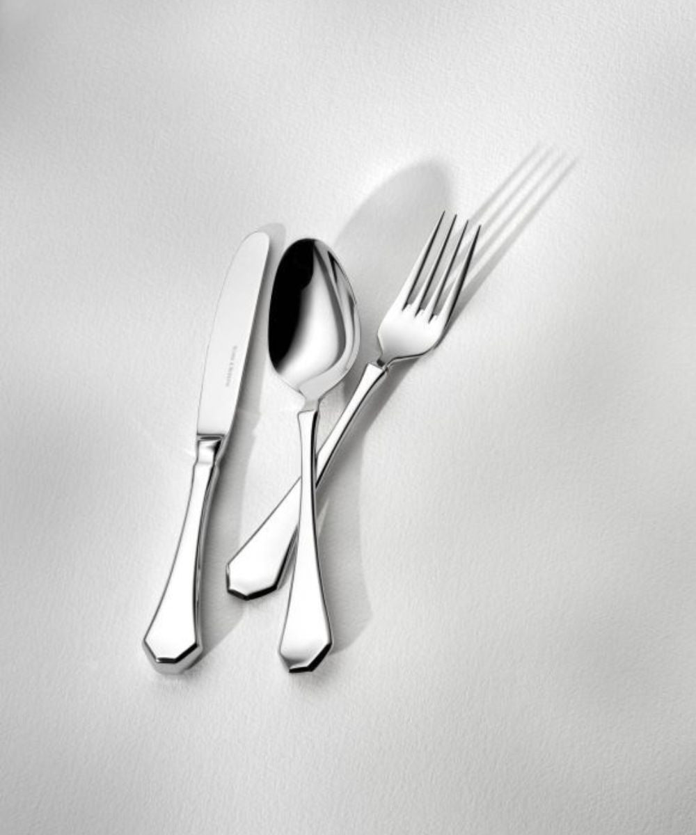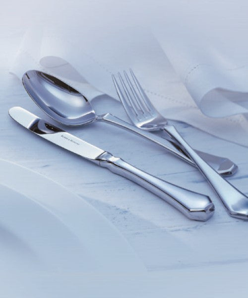 With a classic shape and clean, clipped corners the Robbe & Berking Baltic stainless steel flatware range play both modern and traditional. Crafted using a durable 18/8 stainless alloy, this fine stainless flatware is crafted in Germany to exacting standards—perfectly balanced and well-proportion, this stainless flatware set can be used daily or saved for special occasions. Designed by Rober Berking.