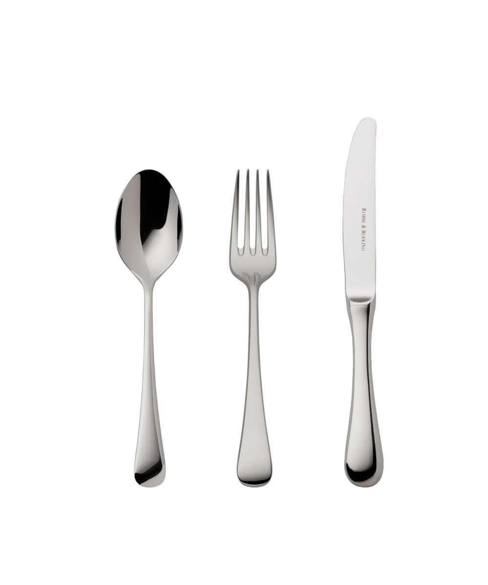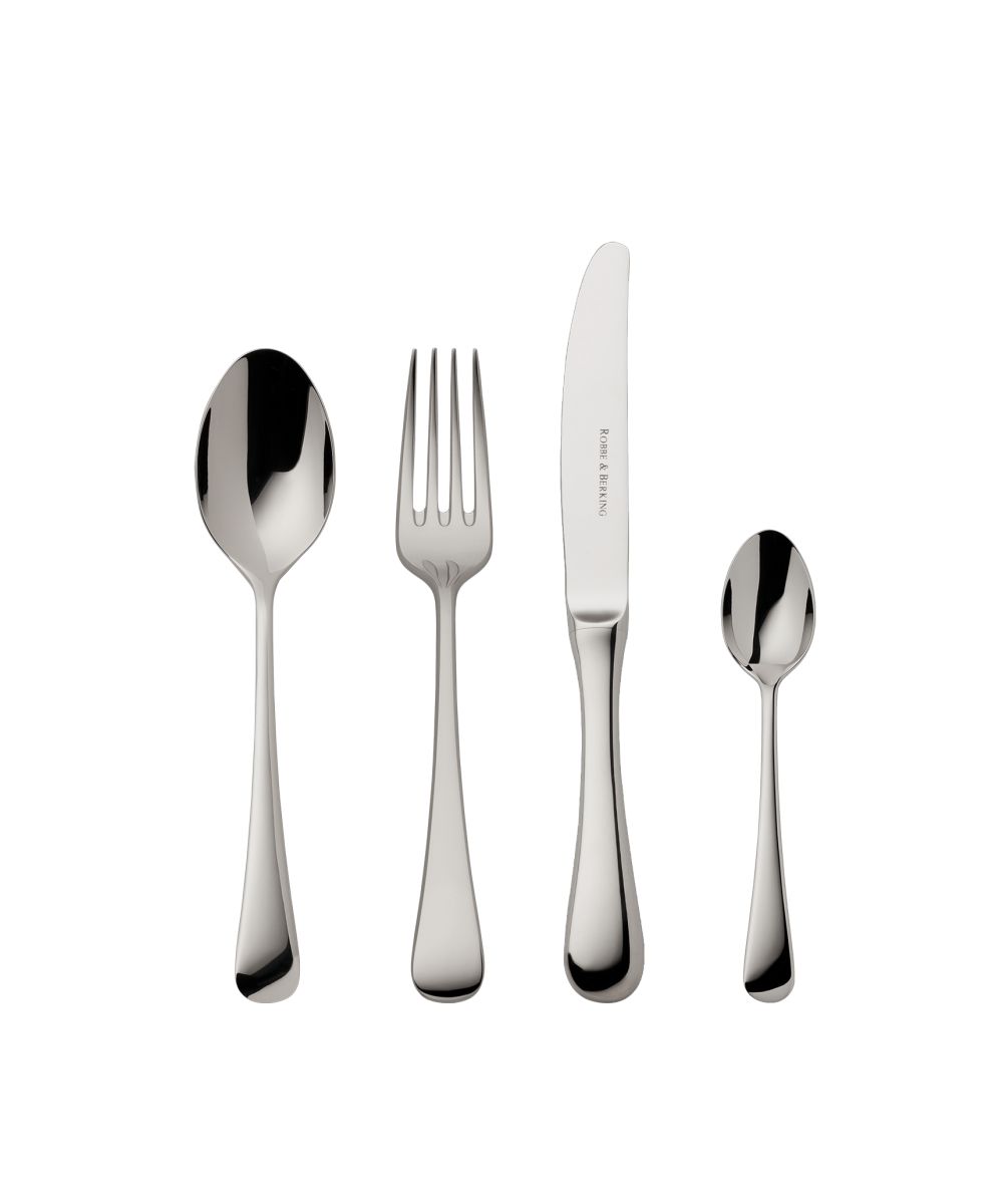 Resembling a graceful arch, the beautiful proportions of the Robbe & Berking Como stainless steel flatware collection allow it to coordinate with traditional and modern tableware. Sweeping curves and a perfect, brilliant polish catch the light. Well-balanced and ideally sizes, pieces from this collection are a joy to use—be it daily or for special occasions.