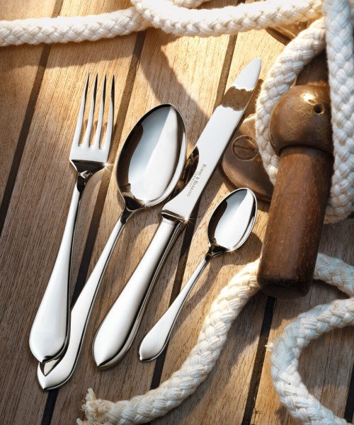 The sterling silver Eclipse flatware pattern by Robbe & Berking pays homage to our beautiful, glowing silver moon. In the moments after an eclipse, as the moon moves to reveal the sun, splendid rays of bright lights shine through — it is this moment that inspires Robert Berking. Straight rays of glimmering light give rise to the clean form of the Eclipse sterling flatware collection Robbe & Berking makes today.