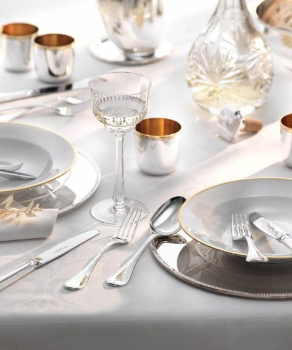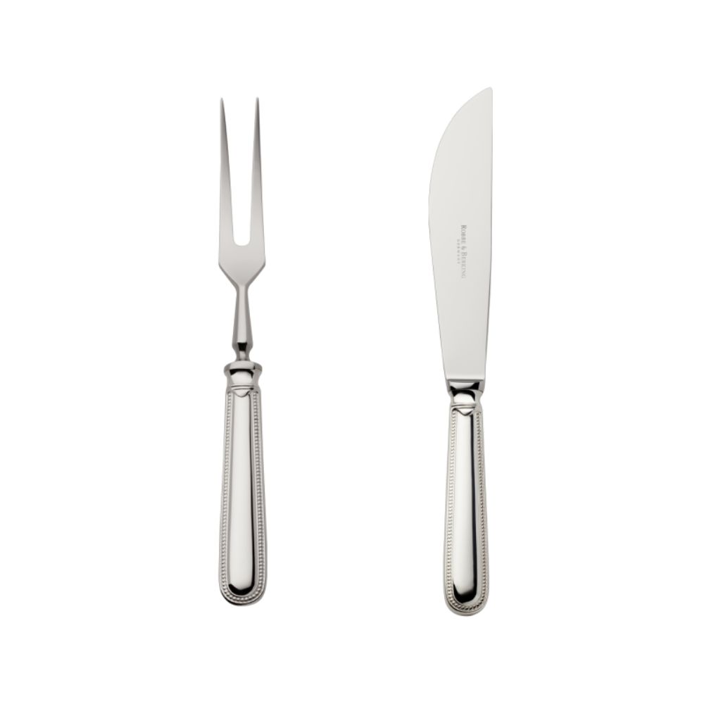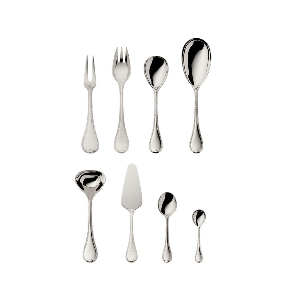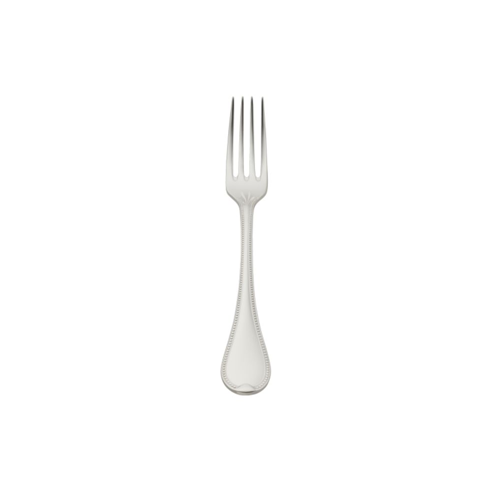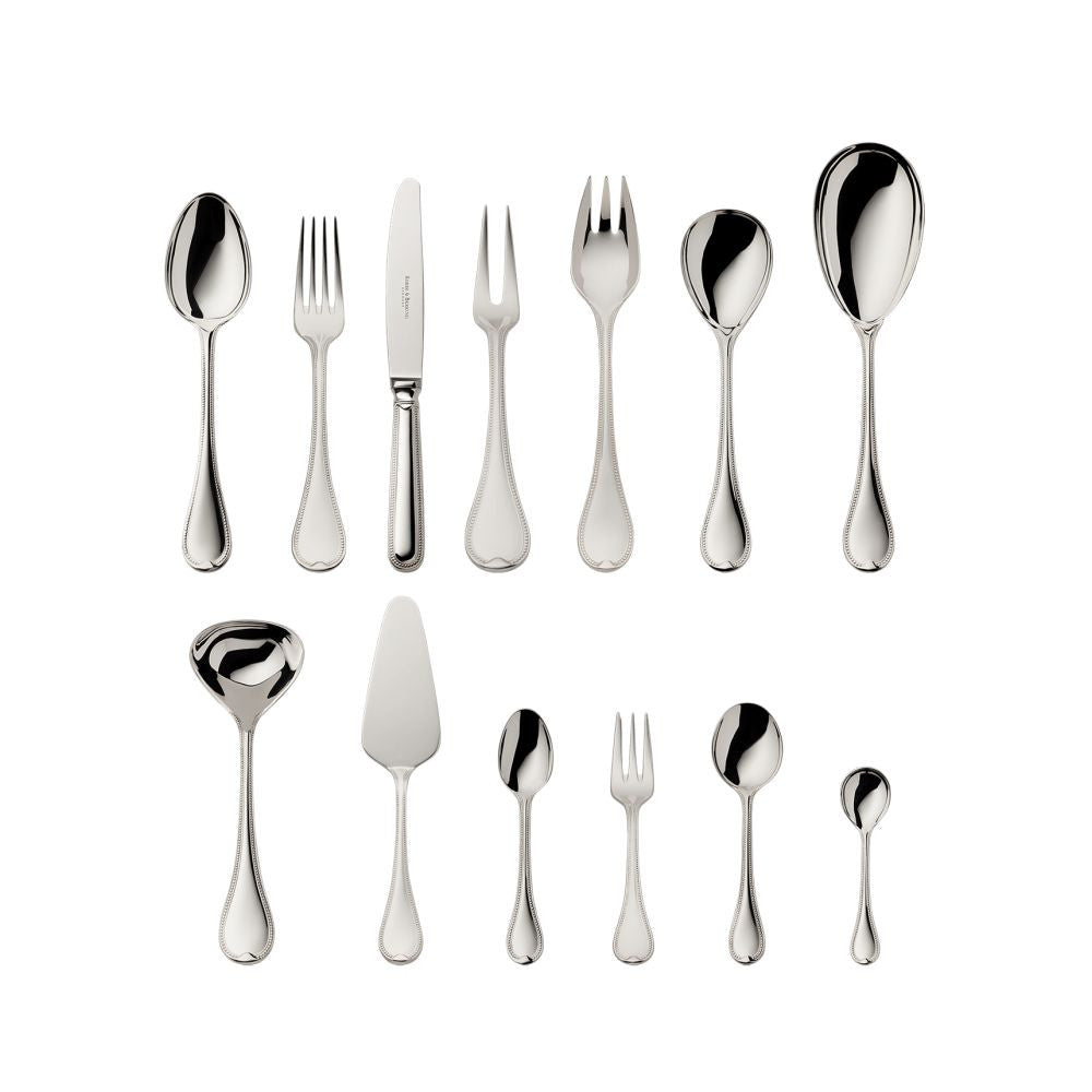 Effortless and elegant, the Französisch-Perl sterling pattern by Robbe & Berking features a timeless beaded edge motif. Impeccably hand-finished, this sterling silver French Pearl flatware collection by Robbe & Berking is offered in a wide range of place-setting and serving pieces. Designed to resemble a fine pearl necklace, the intricate sculpted beads speak to the superb silversmithing Robbe & Berking is known for. For a distinctive take on the beaded sterling flatware pattern, look no further. Engraving services are available.