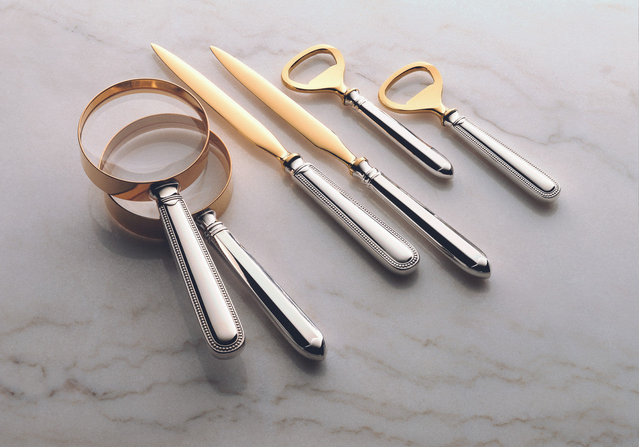 The Robbe & Berking French Pearl Sterling Silver Magnifying Glass — available with or without 24k gold accents — offers timeless elegance with masterful craftsmanship.