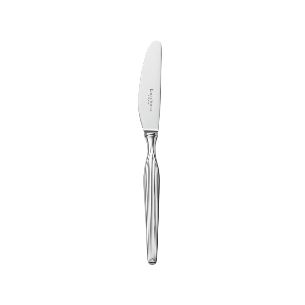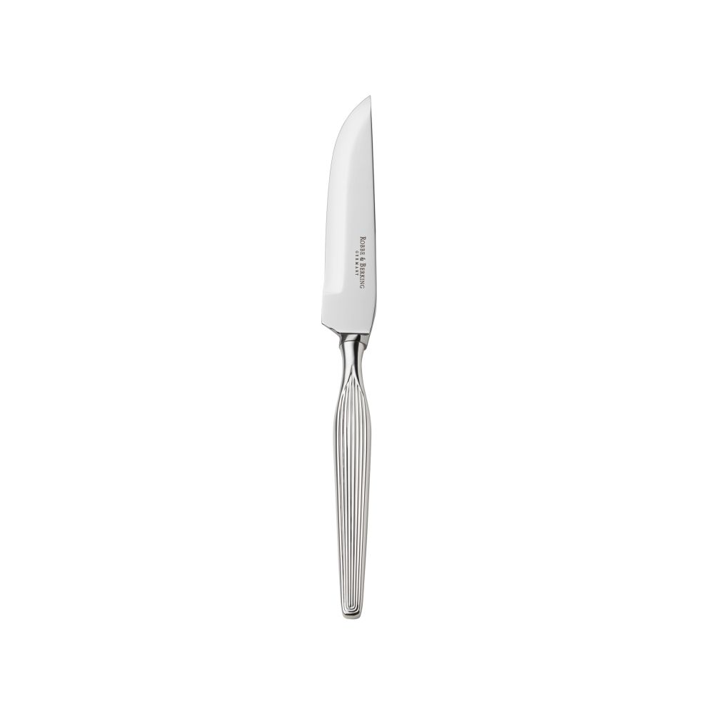 A Robbe & Berking design icon, the Metropolitan silverplate flatware set brings all of the glamour of Mid-Century Modern design into a silver plated flatware pattern designed for today’s market. Created by Robert Berking to celebrate the 150th anniversary of Robbe & Berking, this Germany silver flatware pattern would be a stylish addition to the well-heeled table — be it in Palm Springs or Palm Beach, this richly adorned groove design glimmers in fine 150g silverplate.