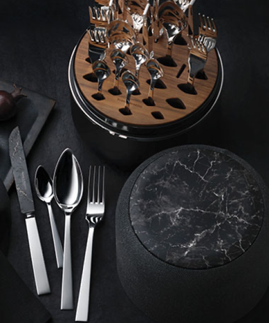 Riva THE BOX with Marble Knife Blades in Silverplate