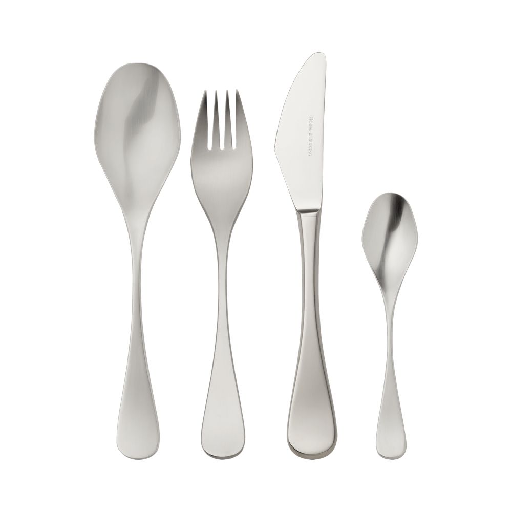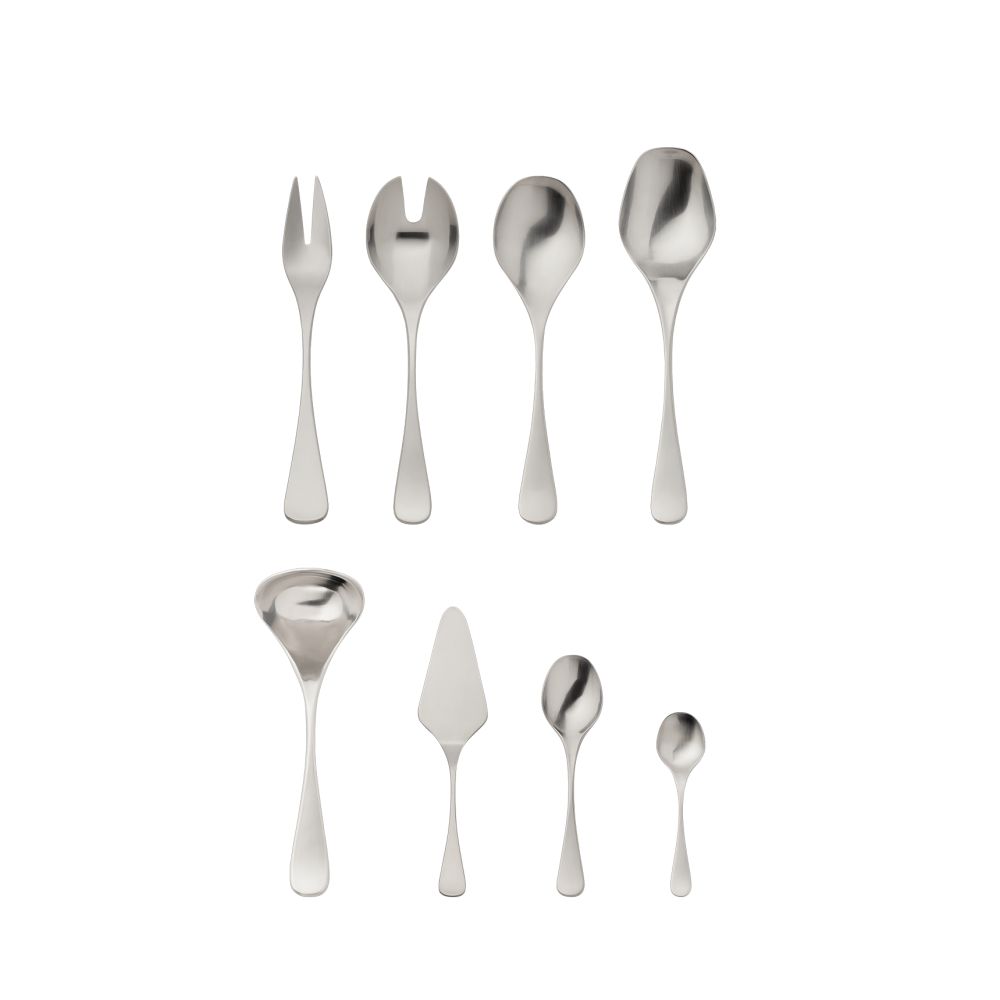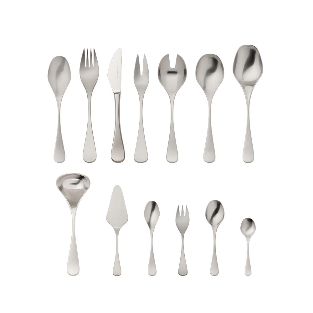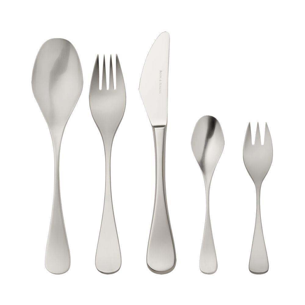 Inspired by timeless Scandinavian design, the Robbe & Berking Scandia stainless steel collection of flatware has organic curves and classic form—with a modern, brushed finish. Offered in a wide range of pieces, this Robbe & Berking modern flatware collection is a must for lovers of modern design.