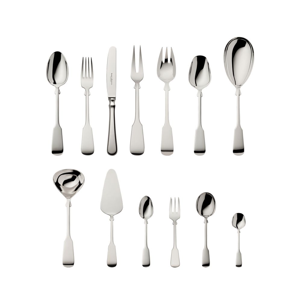 Expectational design truly is timeless. An original design of Robbe & Berking, Spade sterling silver flatware has endured for centuries as the classic silverware design. Beautifully reimaged, Spaten sterling by Robbe & Berking is a versatile design that will compliment a wide range of tablescapes — equally at home on a traditional table or a modern table. Engraving service available by request.