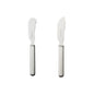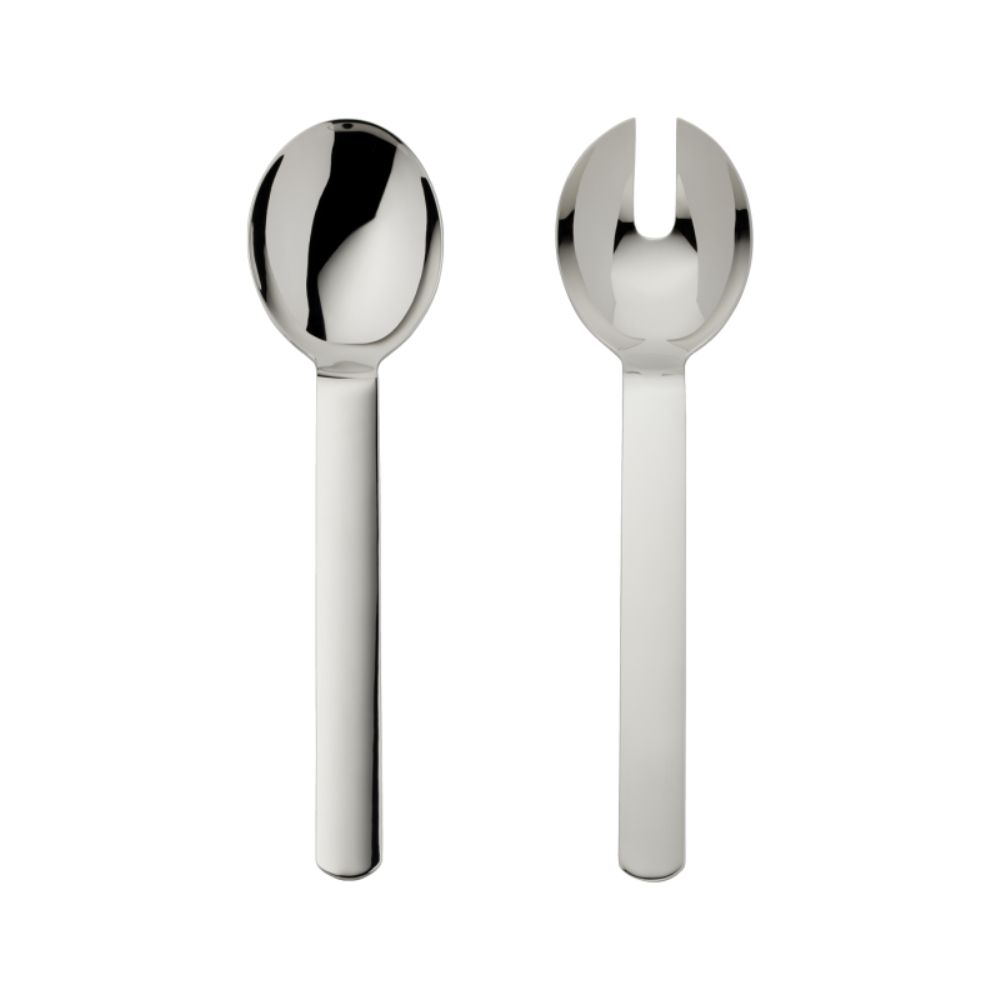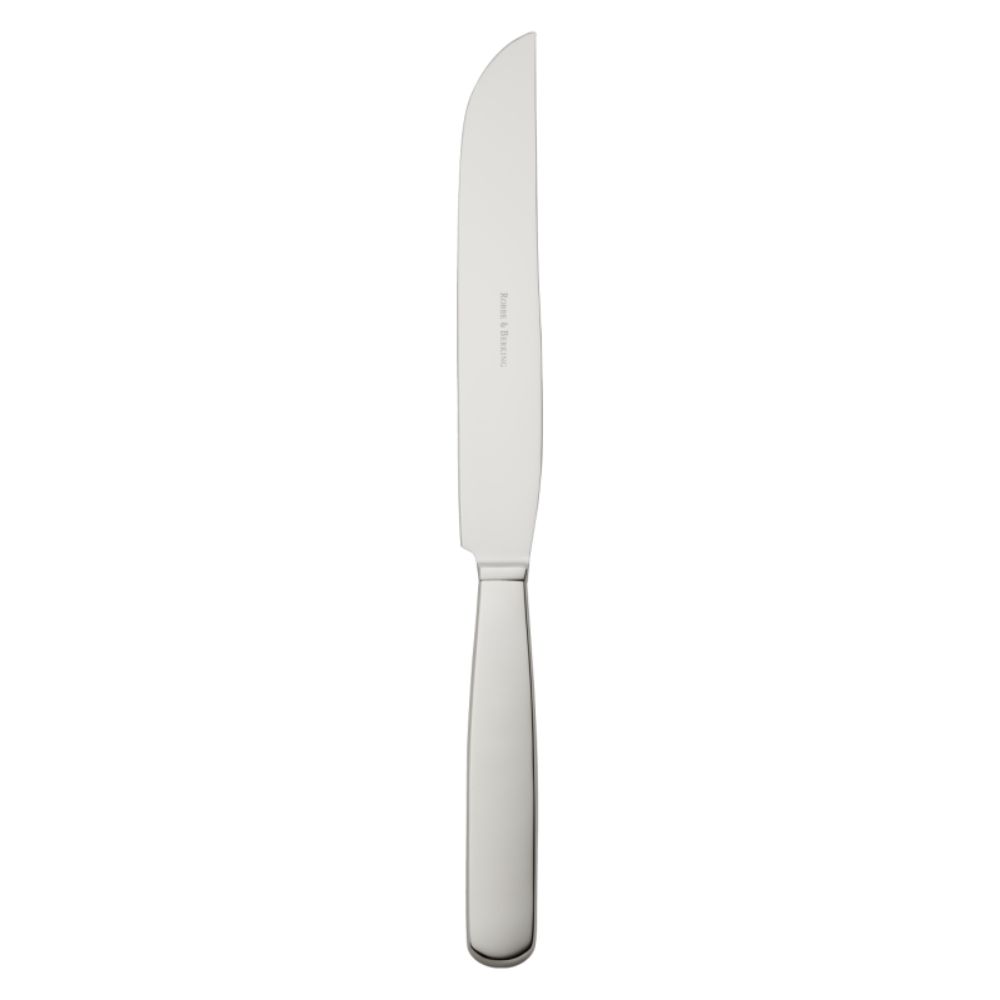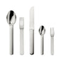 The simplistic form of the Robbe & Berking Topos line of modern stainless steel flatware has a clean aesthetic, making is a popular choice for modern tables. Blunt handles have straight edges that give way to a rounded edge at the bottom. Substantial in the hand but well-balanced, this high-polished classic stainless flatware collection brings cool and collected design to the table.