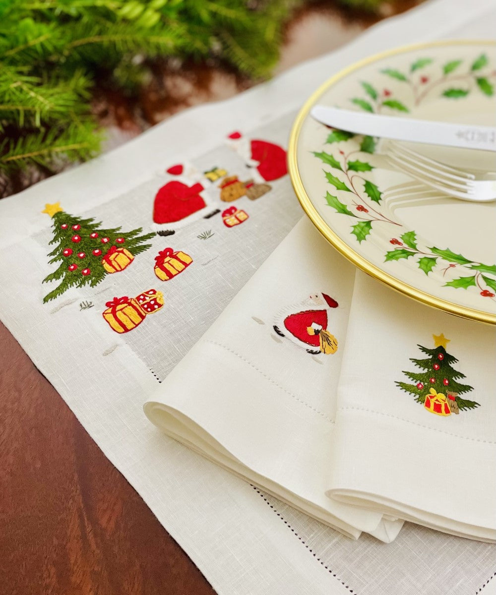 ERI Textiles Santa Clause Hand-Embroidered Table Linens Collection