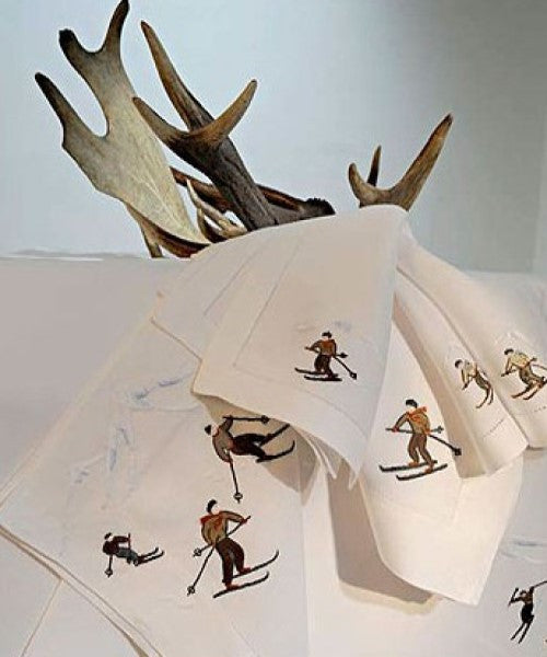 Skier Hand-Embroidered Table Linens Collection