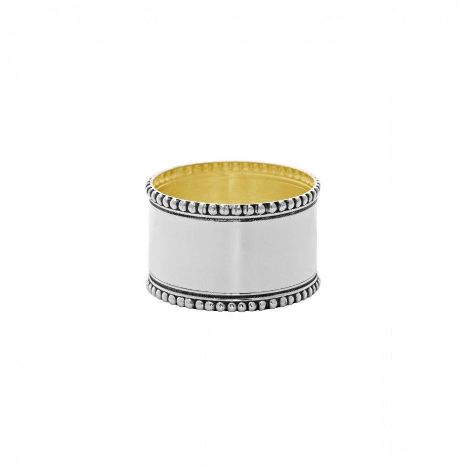 Classic napkin ring design—round shape with beaded edge and a gold washed interior. A traditional piece, suitable for any fine table. Use them daily or for special occasion—they are sure to make an impression.