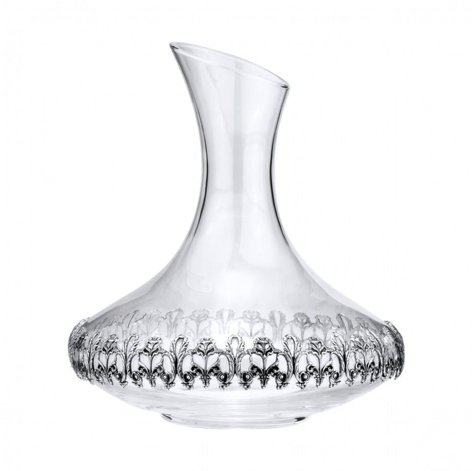A perfect addition to a spring or summer table, this delightful glass decanter features a silverplate collar with floral motif. Perfect for serving your favorite wine, this 50oz pitcher is handmade in Portugal.