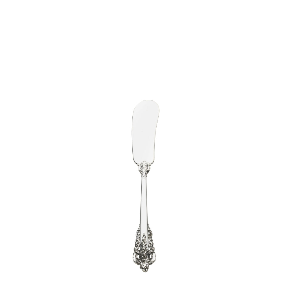Styled in the lavish Baroque manner, Wallace Grande Baroque is their best-selling pattern. Introduced in 1941, it captures classic symbols of the Renaissance in the exquisitely carved pillar and acanthus leaf curved as in nature. The sculptural, hand-wrought quality is evident in the playful open work and intricate, three-dimensional detail, which carries to the functional bowls and tines, and is apparent whether viewed in front, back, or profile. Perfect for traditional and formal settings, this pattern is also available in Gold Grand Baroque.