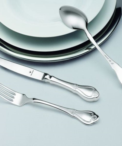 The Wilkens Mirabell Palace 800 Silver Flatware Collection belongs to the prestigious Wilkens Collector’s Edition, a curated selection of historic patterns drawn from multiple artistic eras and stylistic traditions. Each model within the edition is produced using original historical tools, ensuring extraordinary authenticity and honoring the heritage of traditional European silversmithing.