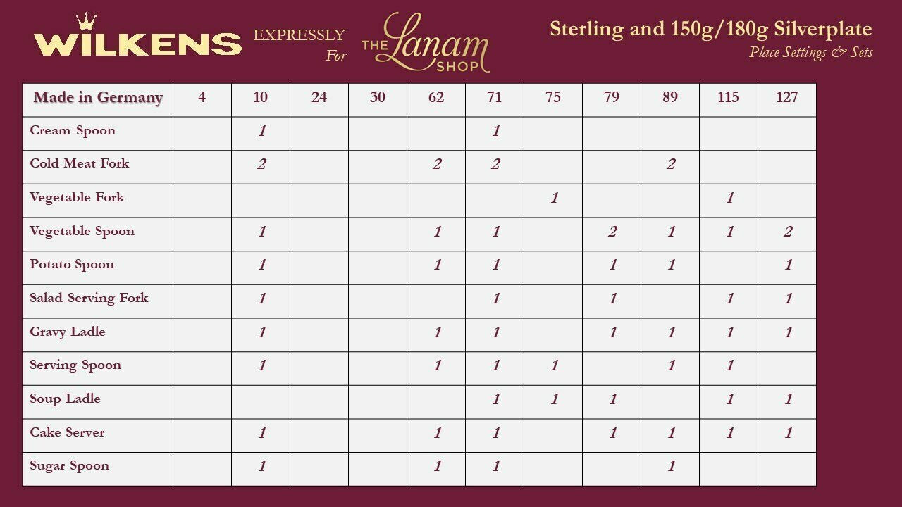 The Lanam Shop is pleased to offer the Wilkens Spaten Sterling Silver Flatware Collection in 925 sterling silver, with options for coordinated serving pieces. Personalized engraving may be added upon request, allowing each piece to become a meaningful family heirloom.