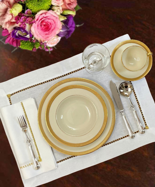 Thick Laurel Edge Hand-Embroidered Table Linens Collection